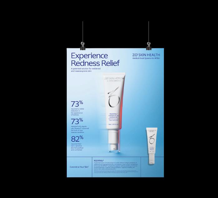This month, we recognize Rosacea Awareness Month alongside the one-year launch anniversary of upgraded Rozatrol® + Soothing Hydro Mist. Promote ZO's targeted redness solutions throughout your practice with the exclusive display pieces below.
