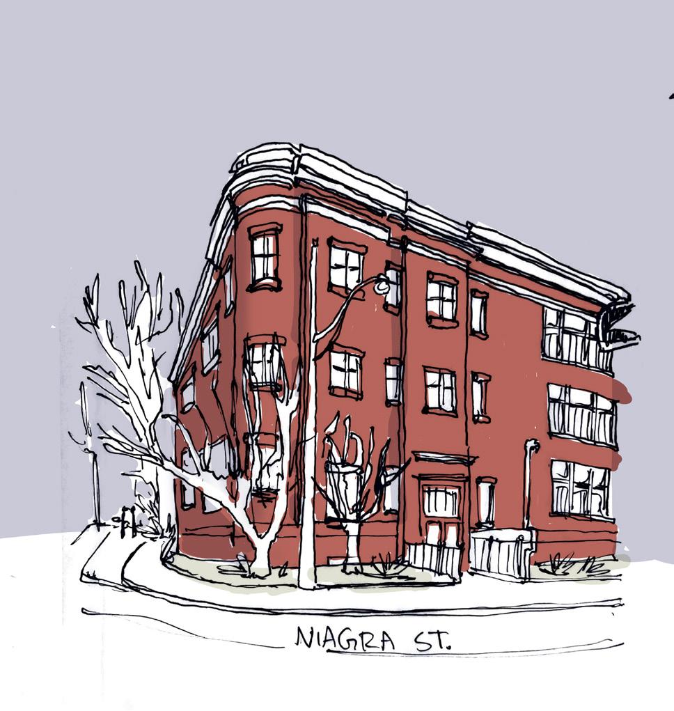 The proximity of Niagara Street Junior Public School influenced the project’s scale and material choices, encouraging a quieter residential expression, increased passive surveillance, and generous sidewalk setbacks that support student movement, safety, and everyday community activity along the street.