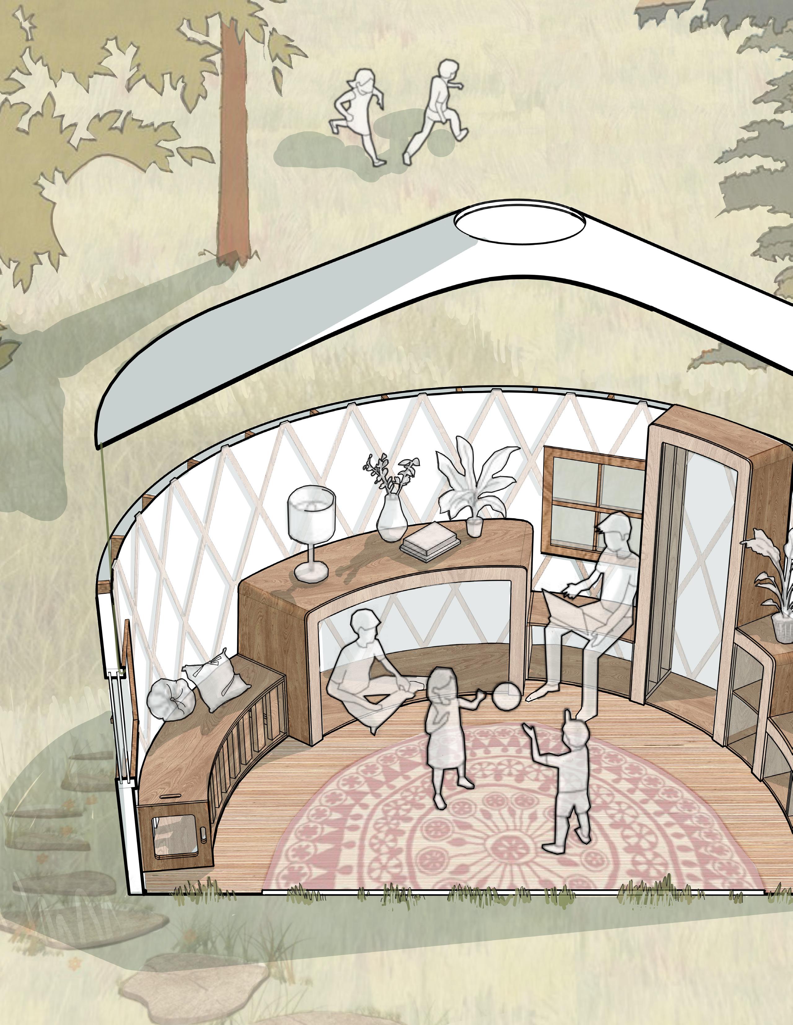This design-build project for Camp Winston is currently in fabrication, focused on creating an inclusive, sensorily considerate interior for a yurt to be used by children with developmental disabilities.