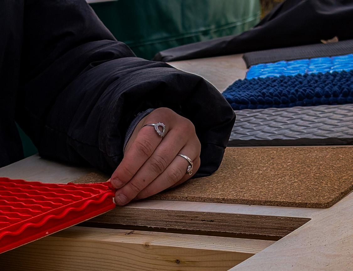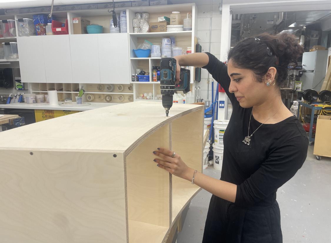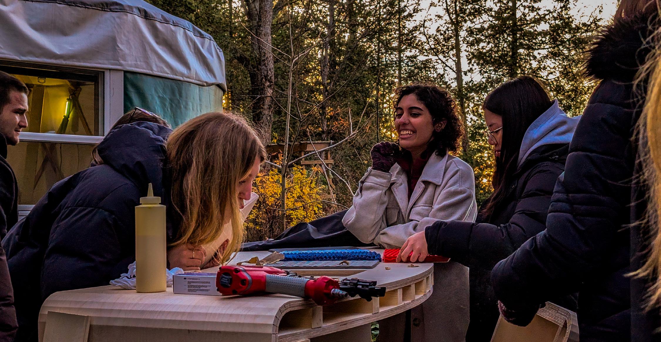 The Camp Winston project involved an on-site trip that informed both design and fabrication decisions. Measurements, user needs, and spatial constraints were documented directly within the yurt. Fabrication was completed through handson prototyping and full-scale mock-ups, allowing details to be tested, adjusted, and refined. This process strengthened the connection between design intent, material behavior, and inclusive construction methods.