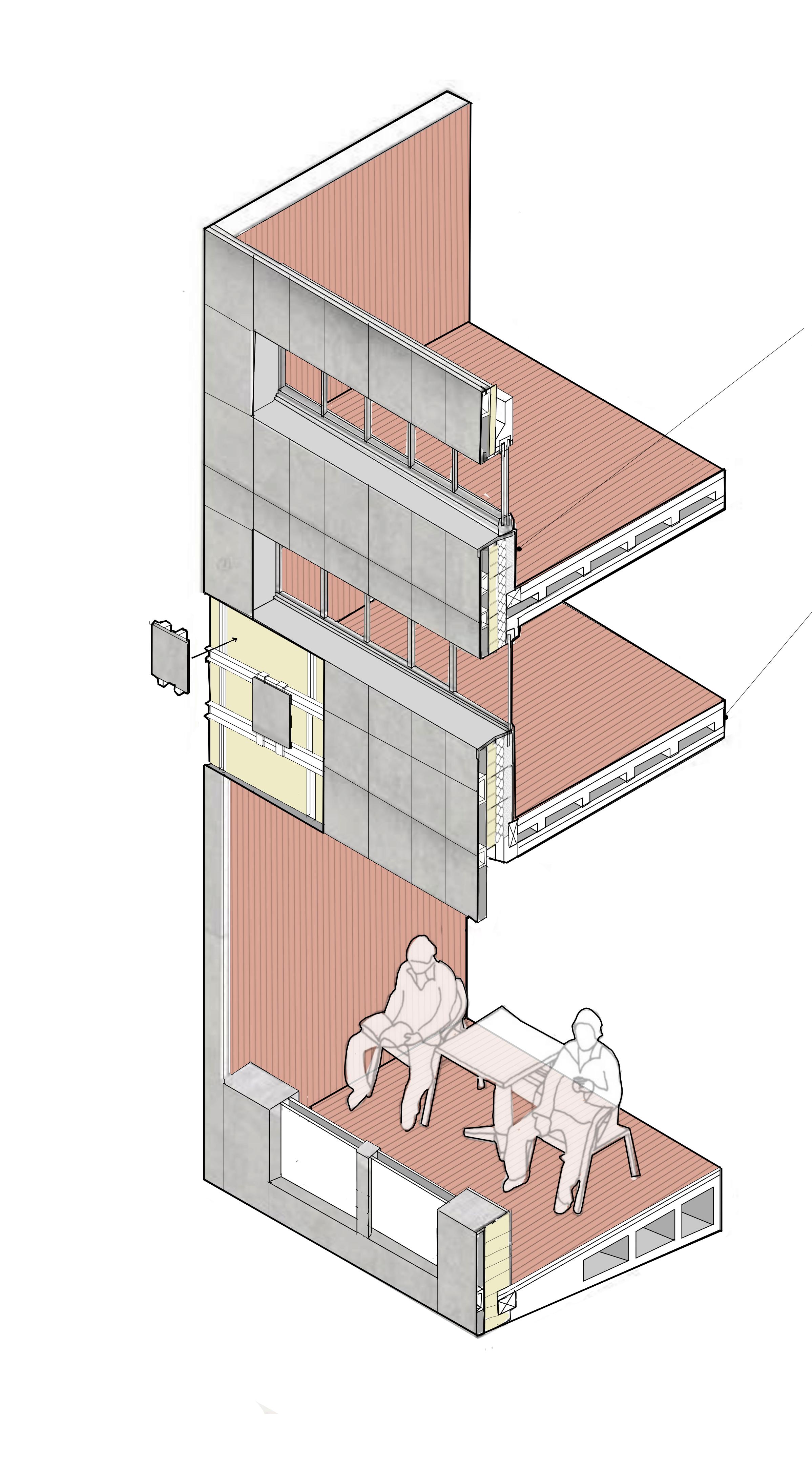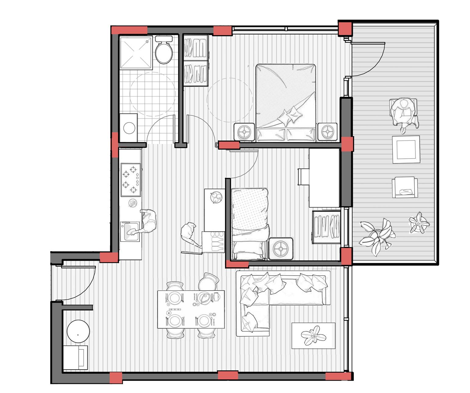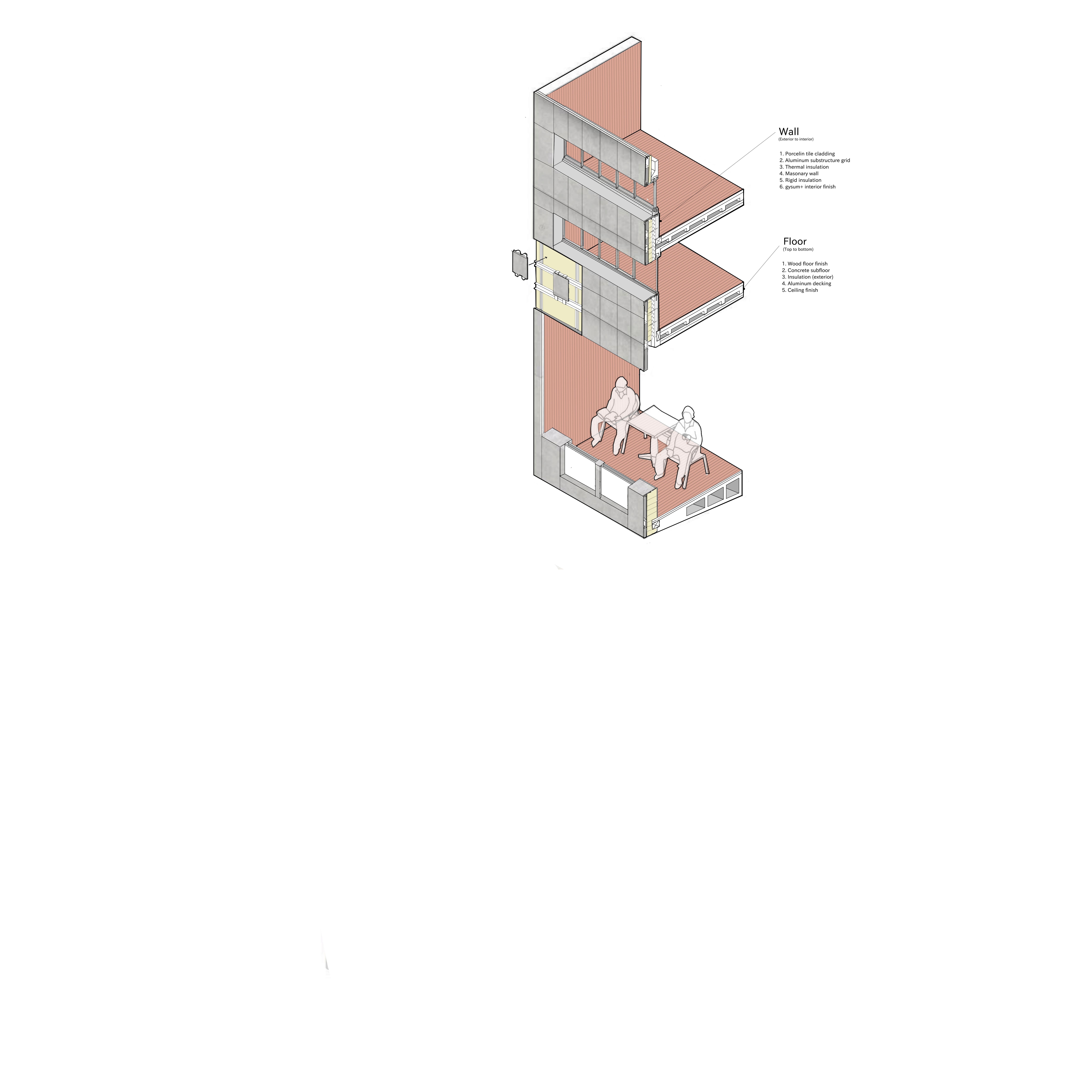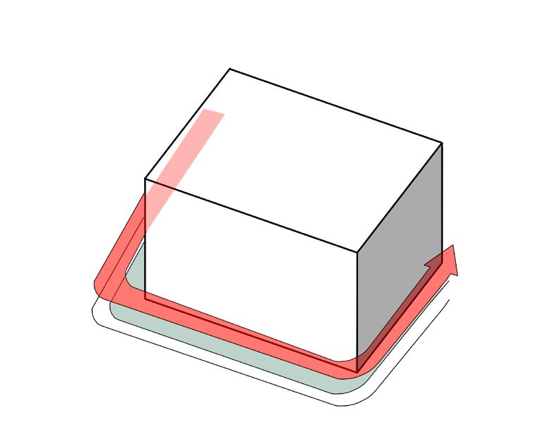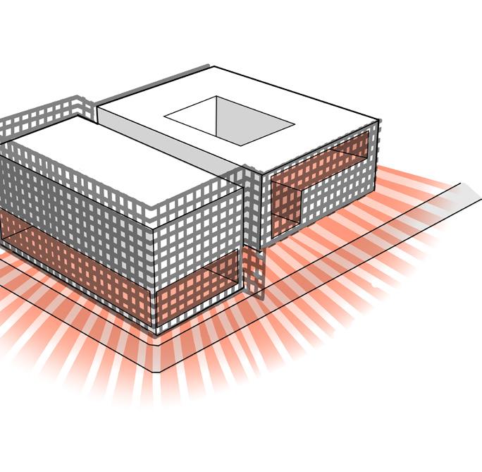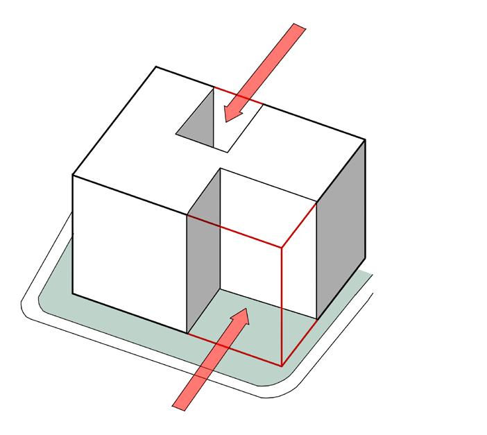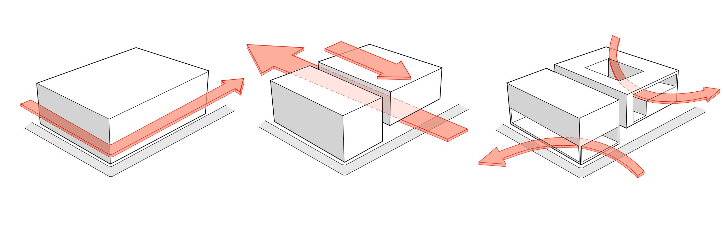 throughout the building massing aim to a smooth pedestrian experience through the intersection. while improving daylight penetration, natural ventilation, and visual connections between units and public space. These strategies help reduce perceived building scale, support passive environmental performance, and encourage informal social interaction within shared circulation areas, reinforcing the project’s integration with the surrounding urban fabric.