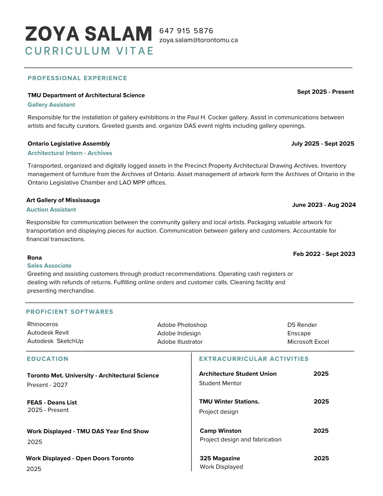 Hi! My name is Zoya Salam, a third-year coop student currently pursuing a Bachelor of Architectural Sciences at Toronto Metropolitian University.