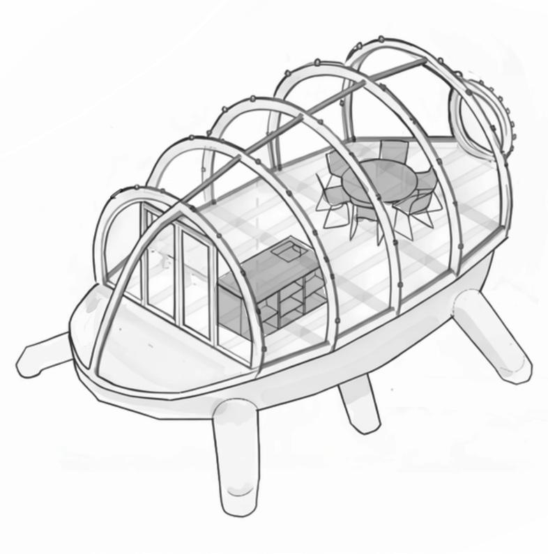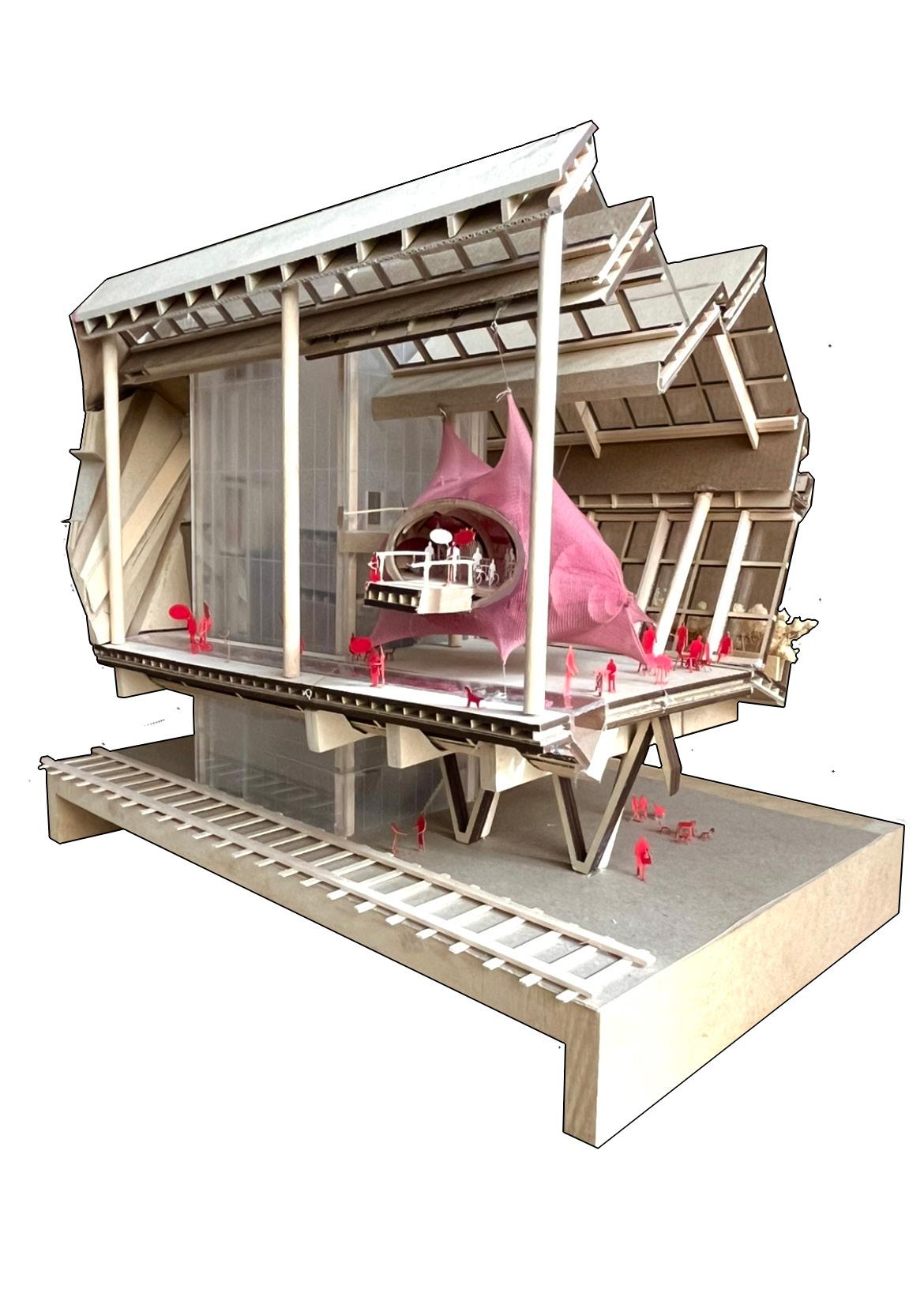 The sawtooth form allows daylight to penetrate deep into the station while reinforcing the rhythm of movement along the rail corridor. Its repeated geometry breaks down the building’s scale and supports natural ventilation between modules. The tensile modular spaces introduce flexibility, allowing programs to expand, contract, or shift over time. Together, these systems create a lightweight, adaptable architecture that balances structural clarity with spatial permeability and user comfort.