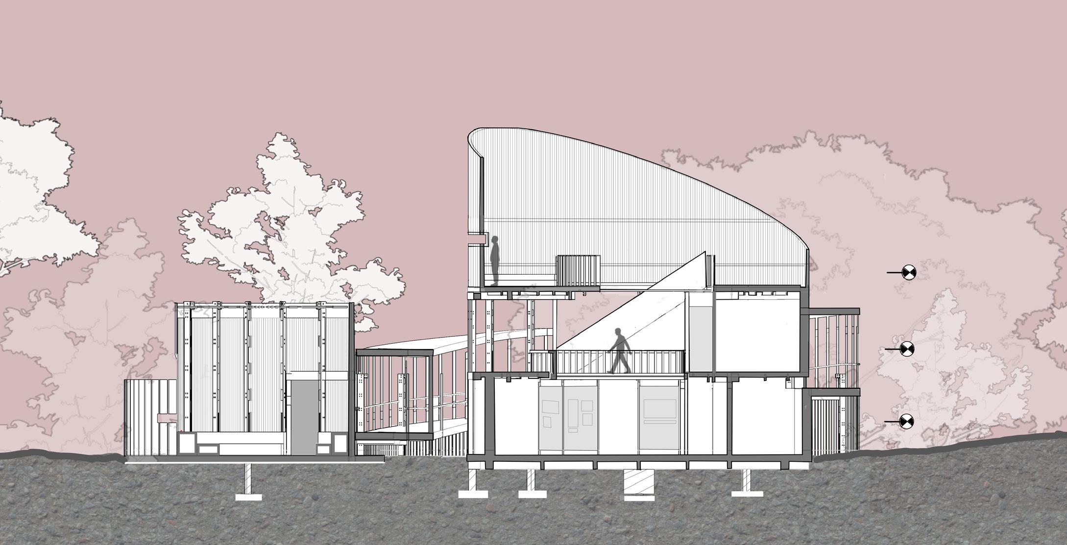 This community space acts as a respite for the pedestrians of High Park, housing a community gallery and primary student learning centre. The looping form of the community centre invites visitors on a journey that culminates in a view of the Humber River.