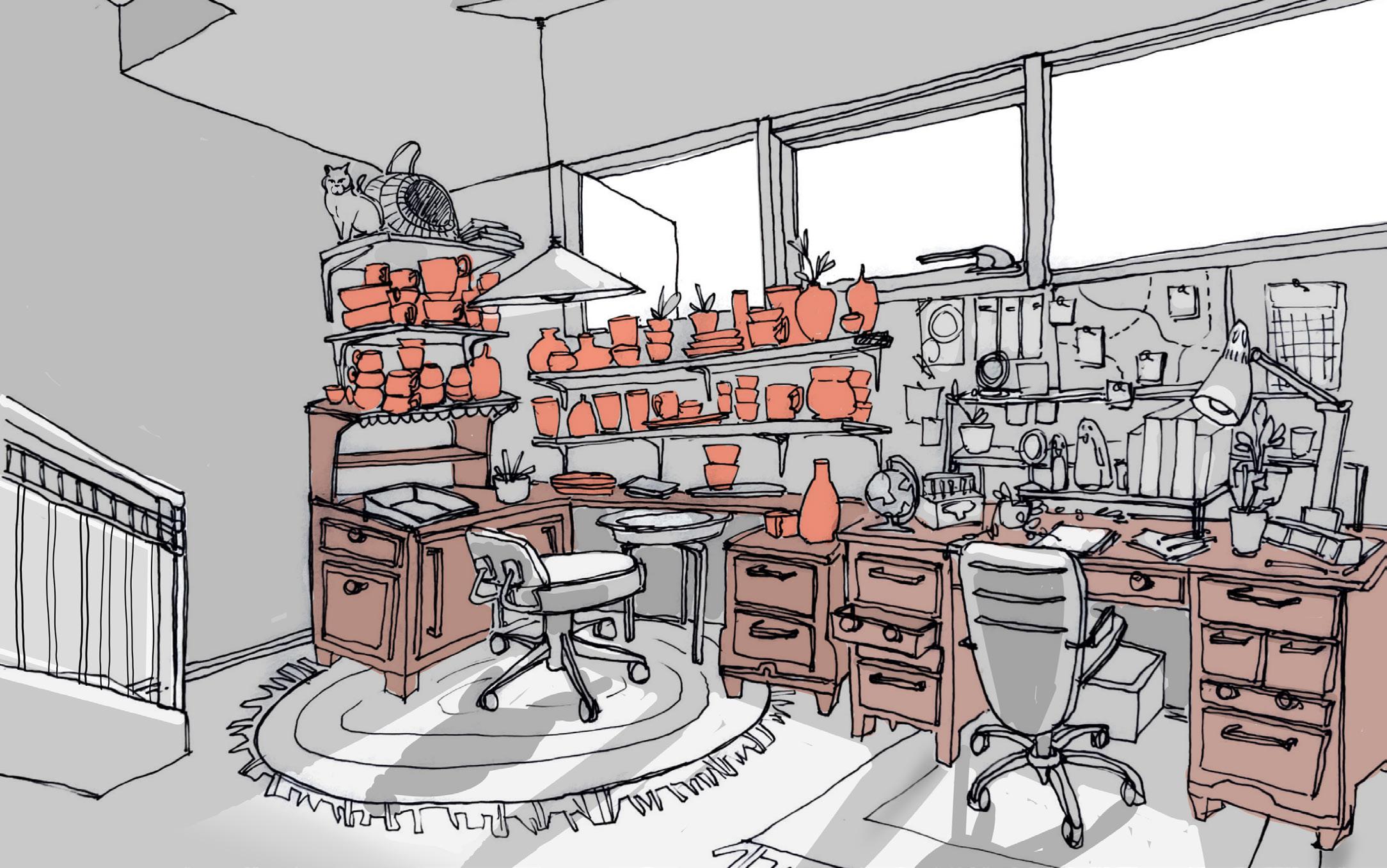 INTERIOR PERSPECTIVE - BASEMENT WORKSPACE