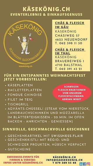 Nr. 49 / Donnerstag, 8. Dezember 2022 3 Verkauf und Reparaturen von Haushalt- sowie Büro-Kaffeemaschinen in Oensingen Gummertliwe 062 388 20 50 / ww Öffnungszeiten: Mo Fr 13 30 17 OENSINGEN: ACHTUNG! ANKAUF ALTGOLD Wir kaufen Goldsachen und Verschiedenes! Auch defekt, zum höchsten Preis: Ringe, Armbänder, Ketten, Münzen Armbanduhren: Tissot, Omega, Longines, Heuer Stahl oder Gold, Silbersachen, Bestecke (800, 925) usw Versilbertes, Zinnwaren, Schwyzerörgeli, Luxus-Handtaschen, Sackmesser usw Offerten kostenlos, Barzahlung Montag, 12. Dezember 2022 von 9.00 bis 16.00 Uhr Restaurant Pizzeria Stampfeli, Solothurnstr 19, Oensingen Für Fragen/Hausbesuche: F W ✆ 079 324 67 69 1 0 2 4 8 9 6 6 1 0 0 6 4 7 7 5 SONNTAGSVERKAUF 1112.2022 und 18 12.2022 jeweils 10.00 17.00 Uhr www gaeupark ch Zu den Öffnungszeiten: 1 0 2 4 8 5 1 1 0 0 5x SUPERPUNKTE 5x Superpunkte auf Ihren Einkaufsbetrag mit der Supercard E ösba h e JUMBO Ve kau sste e So o hu u d Ege ki ge Gäupa k Bo a de Kasse abgebe u d pe sö l che Supe ca d vo we se Bon nur einma e n ösbar N cht kumu erbar m t anderen Bons N cht gü ig fü On neshop Raucherwaren Lebensm te T e nahrung Depotgebüh en Gasfül ung Geschenkkarten/eVoucher Reka Ca d V gnetten gebüh enpf ch ige Keh ch säcke Gebührenma ken Tchibo So imen Tragtaschen Te e onkarten Gesprächsguthaben Zei ungen/Zei schr f en Baby Anfangsm ch M etgeschäfte Haus eferd enst Reparatu en Ersatztei e D ens Se v ce e s ungen Pro ektberatung Gül g m 11 12 22 Sonntag geöffnet. 11. Dezember 2022 JUMBO Solothurn Weissensteinstrasse 21 4500 Solothurn 11 17 Uhr JUMBO Egerkingen Gäupark Hausimollstrasse 1 4622 Egerkingen 10 17 Uhr 5x SUPERPUNKTE 10249000 10064815 NotariatAmberg Peter Amberg ist umgezogen und zwar ab sofort unter der neuen Adresse Färchstrasse 6, 4629 Fulenbach Telefon 062 393 09 53 E-Mail: notariatamberg@outlook com 10249310-10065194 10249316-10065200
