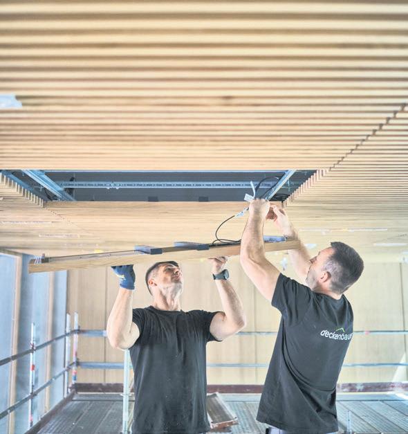 Arbeiten ermöglicht. Die Nutzungsdauer von Verwaltungsbauten beträgt 40 Jahre. Daher müssen Raumstrukturen so konzipiert werden, dass sie mit einfachsten Mitteln an sich verändernde Bedürfnisse angepasst werden können. Damit dies möglich ist, verantwortet eine Projektorganisation die Umsetzung. Deren Arbeitsgrundlage ist ein gemeinsam entwickeltes Handlungs und Werteverständnis, das sich durch alle Prozesse zieht. Mehr über die Erfolgsfaktoren in kollektiven Prozessen im Interview. AB SEITE 8