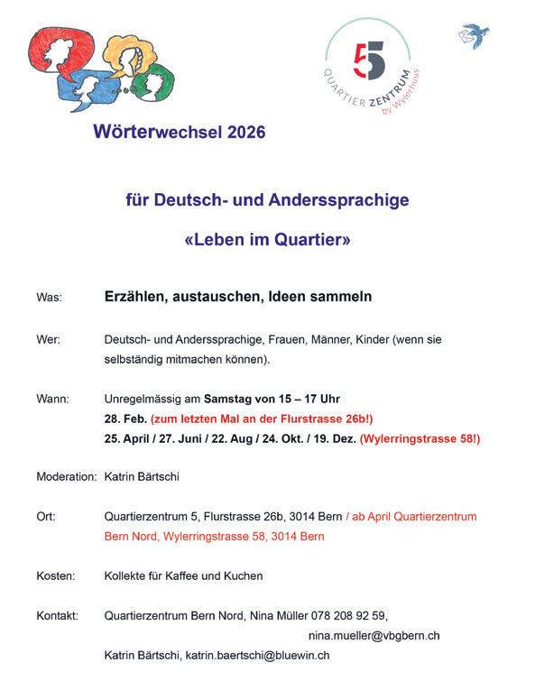 N. Müller | Leitung Quartierzentrum und Quartierarbeiterin nina.mueller@vbgbern.ch