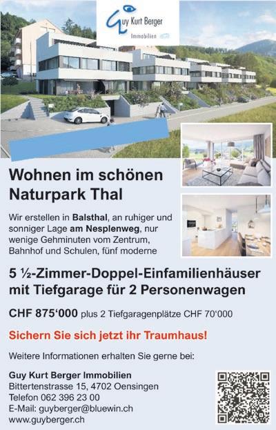 Anzeiger Thal Gäu Olten Bahnhofstrasse 6 4622 Egerkingen Tel. 062 387 80 00 info@anzeigertgo.ch