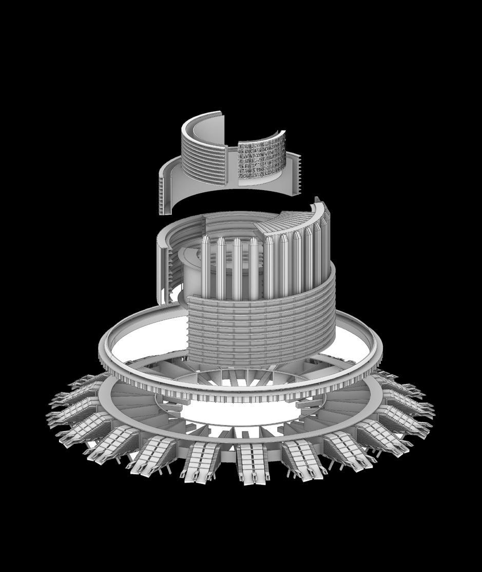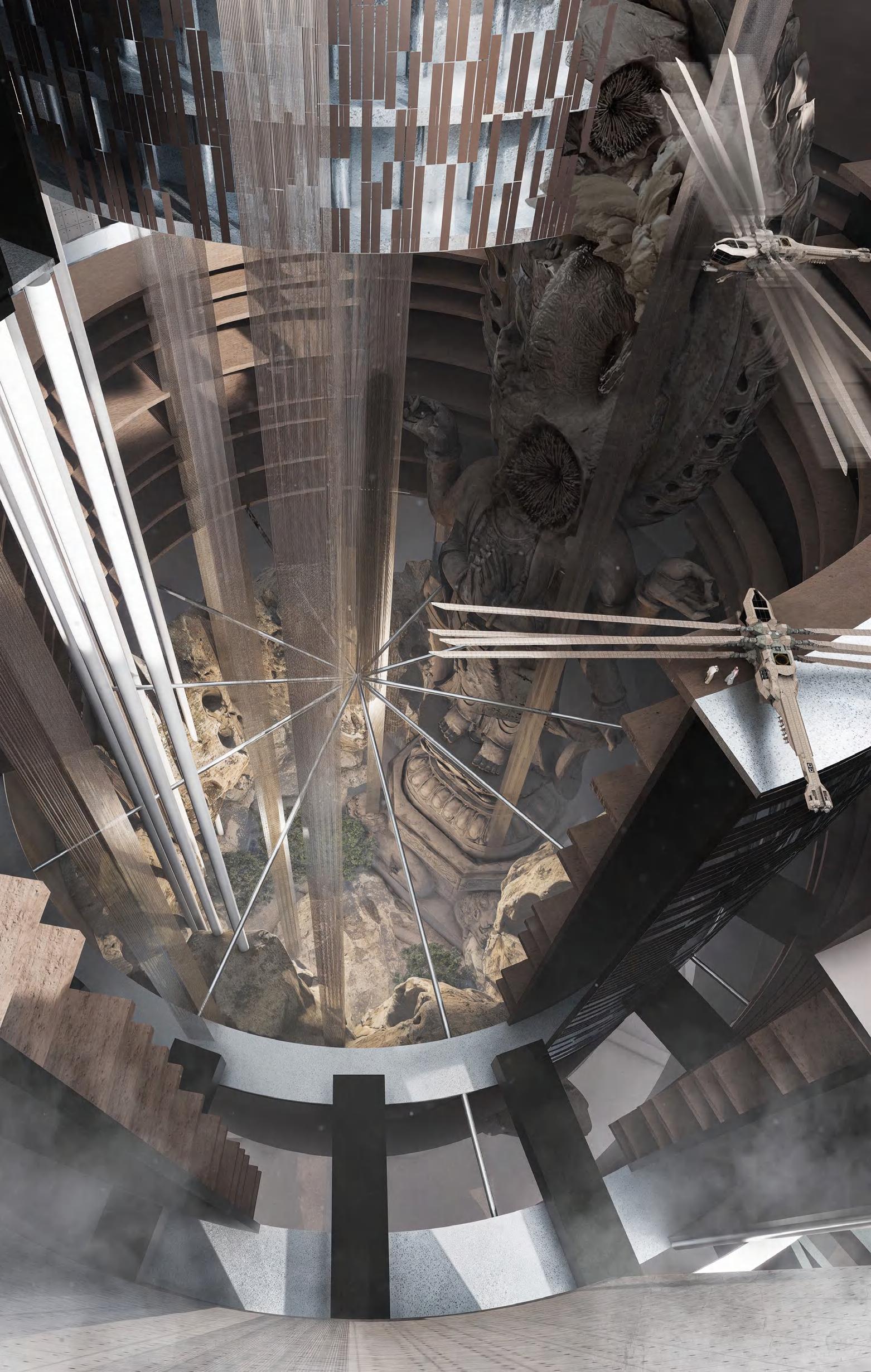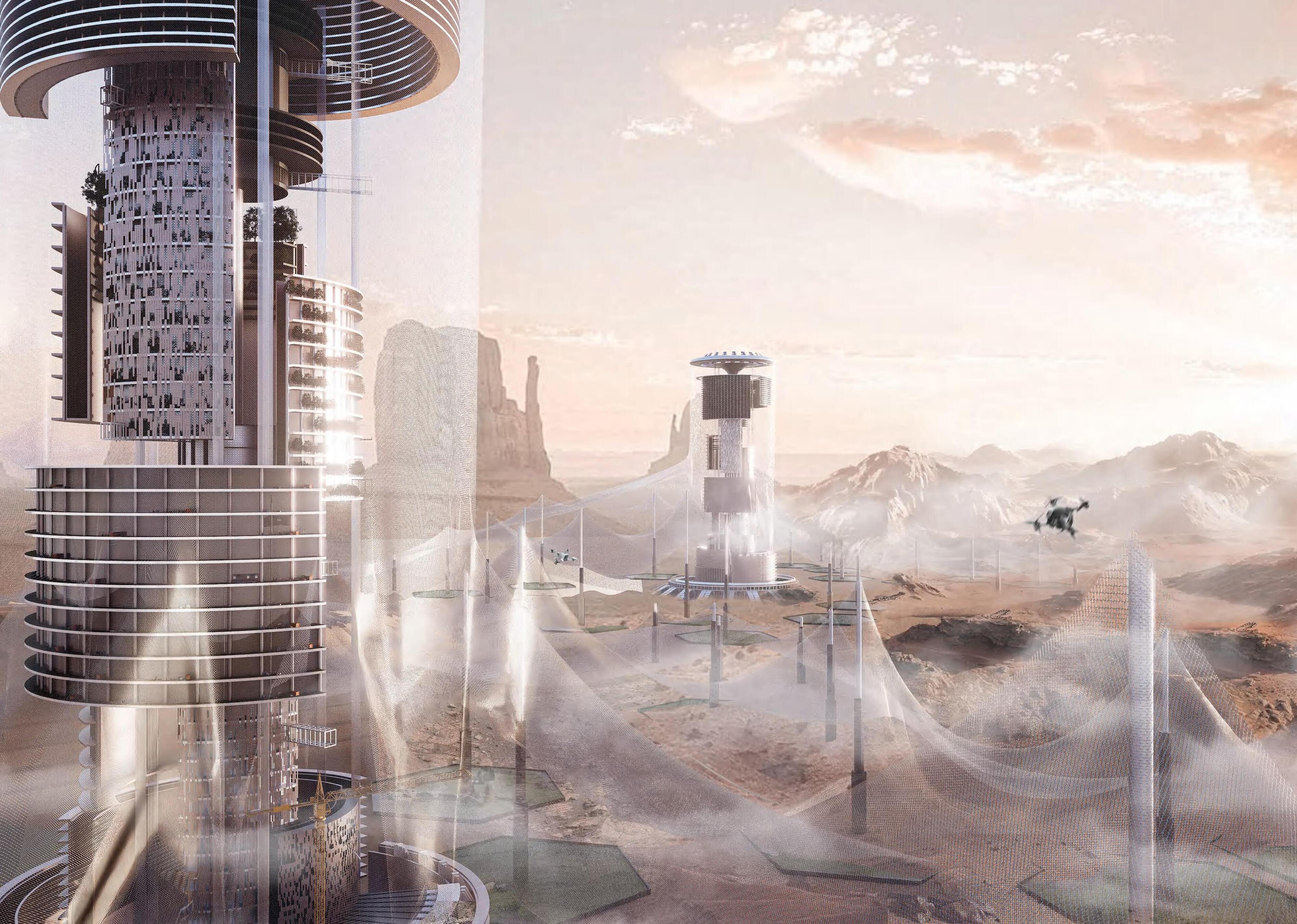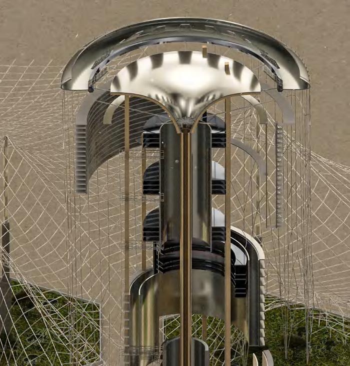 Inspired by the narrative imagery of the desert environment in DUNE, this project proposes a pioneering concept design for water collection and ecological symbiosis: the Water Collection Tower. The design aims to respond to the core themes of water scarcity and sharing in desert ecosystems through the translation of scenes and spaces, while exploring the possibility of sustainable life forms in extreme environments in the future. 4/4