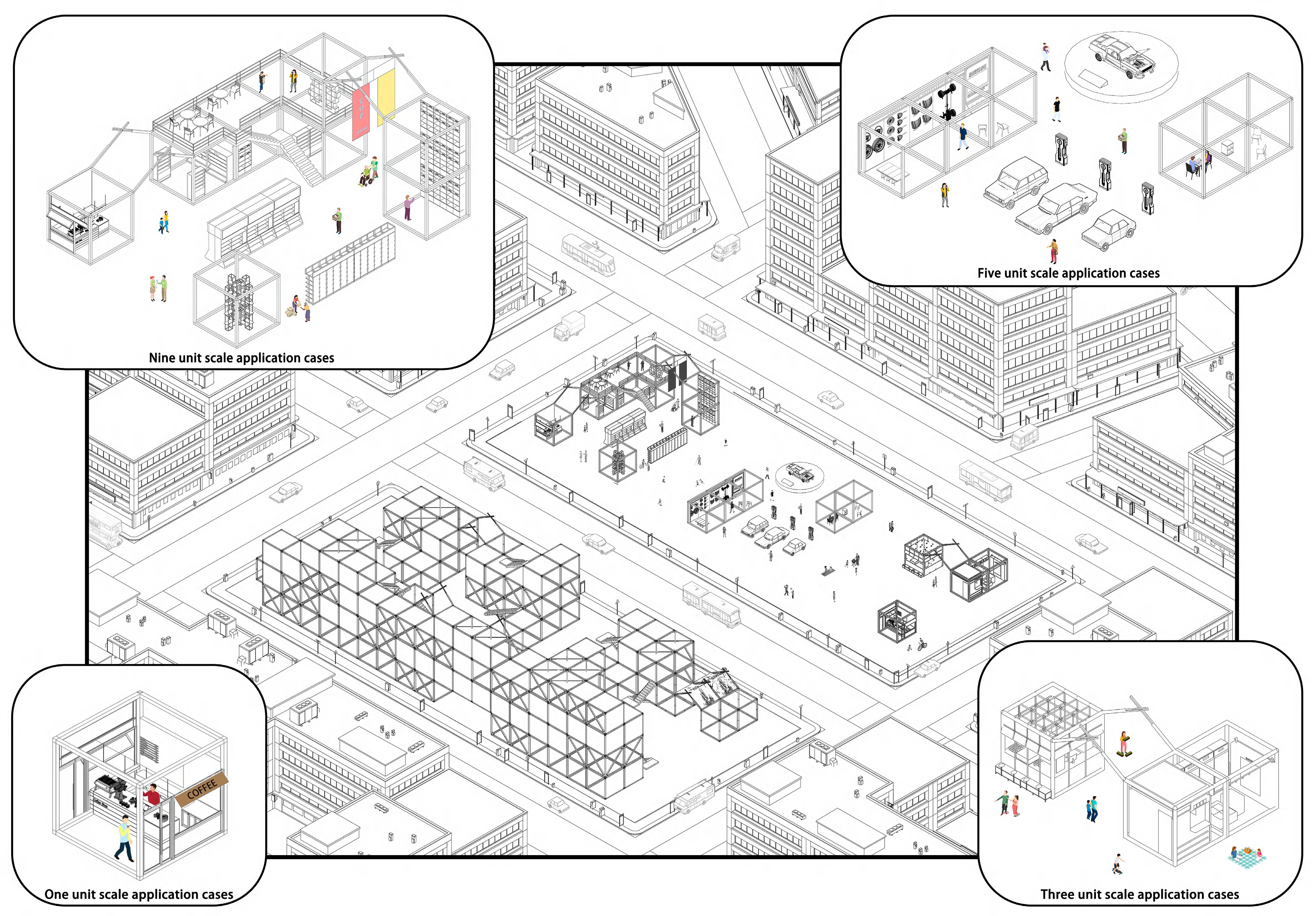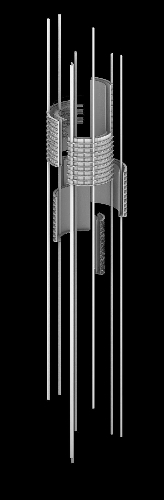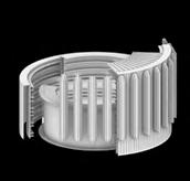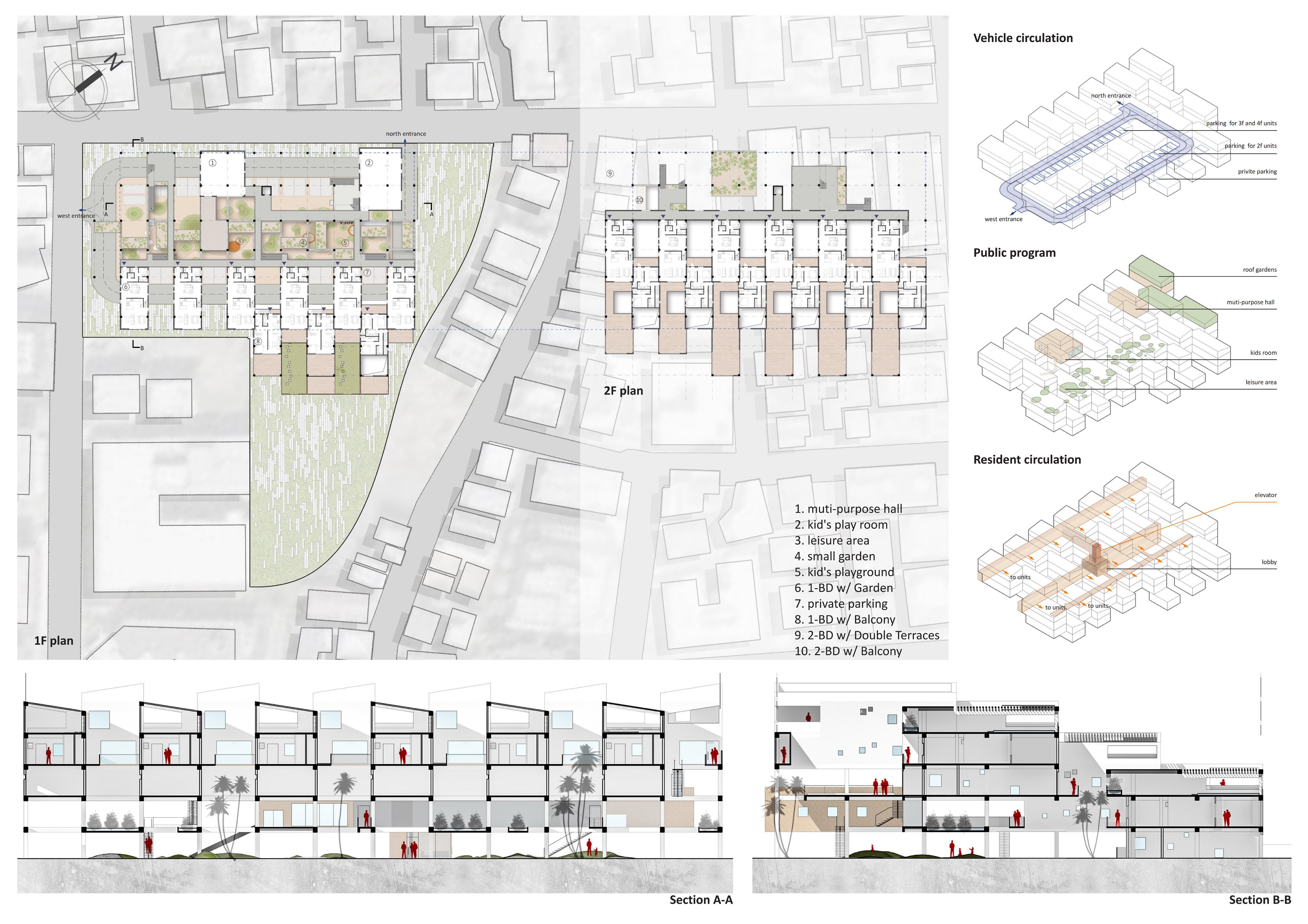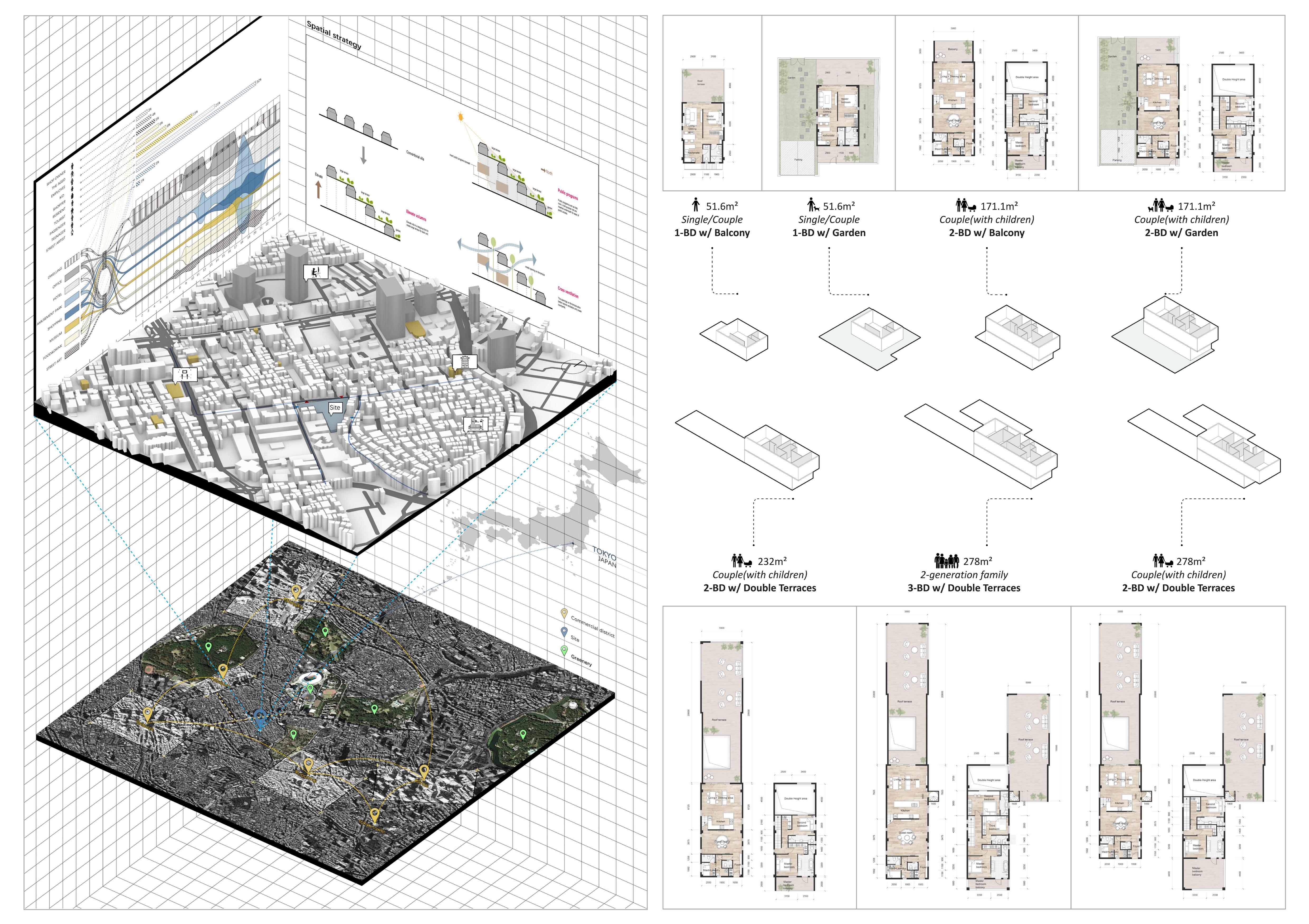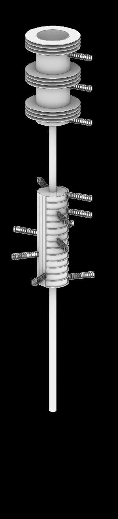 The bottom area embodies the humanized and ecological design of the tower, combining living with environmental protection to create a sustainable ecological community: LIVING AREA: Compact modular houses are designed to provide residents with a comfortable and safe living environment using water processed within the tower and the ecosystem outside the tower.