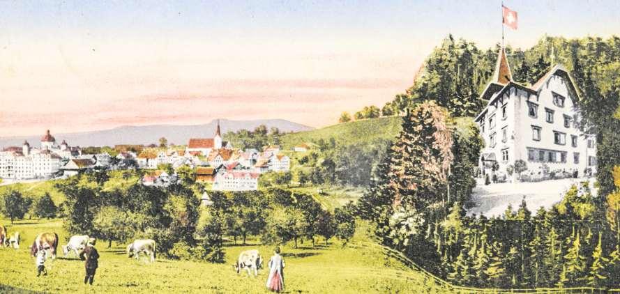 die Geschichte der Zuger Werbung eintau chen (auf dem Bild Menzingen mit dem Kurhaus Schwandegg, 1915)