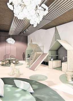 Wellnessoase mit Sauna, Dampfbad und Ruhebereich Visualisierung zvg Eine Lounge exklusiv für Mieterinnen und Mieter Visua isierung: zvg Kinderwelt