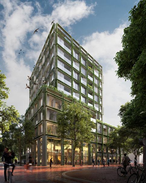 the adjacent Circl pavilion on Gustav Mahlerplein. On this specific spot, Mahler 1 will rise, a multifunctional building with a broad mix of functions. This is a building that prioritises human sustainability, underpinned by behavioural design and extensive embedded biodiversity. You will see and feel this everywhere in the building, in the offices, commercial and social functions, various public amenities, and in the vibrant ground floor plinth. The redevelopment has started with dismantling instead of demolishing, which sets the standard for what’s to come. With this entire project we want to contribute to Amsterdam’s forwardthinking vision, aiming to transform the city into a multi-core metropolis. Mahler 1 is the result of a collaboration between Icon Real Estate, development firm LMTD, the renowned Danish architectural firm 3XN and GXN, and Erik Dhont Landscape Architects. It’s built using natural materials or those mimicing the natural environment, and will incorporate things like aesthetic solar panels.”