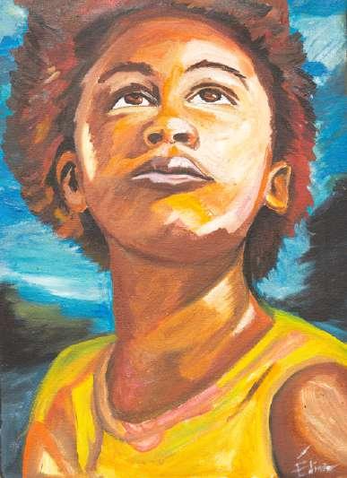 Cada pintura é emoção, memória, ferida e cura. Suas cores vibrantes carregam o Nordeste em que cresceu; suas narrativas visuais revelam camadas de si mesma; e seus personagens, frequentemente meninas, trazem o olhar da artista sobre futuro, infância, fragilidade e força.