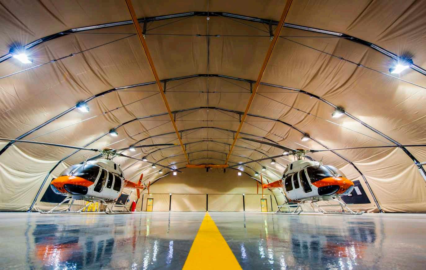 The larger span 28m EFASS is designed for the MH-47 Chinook military helicopter, and features increased wind and snow loads along with a more spacious working area.
