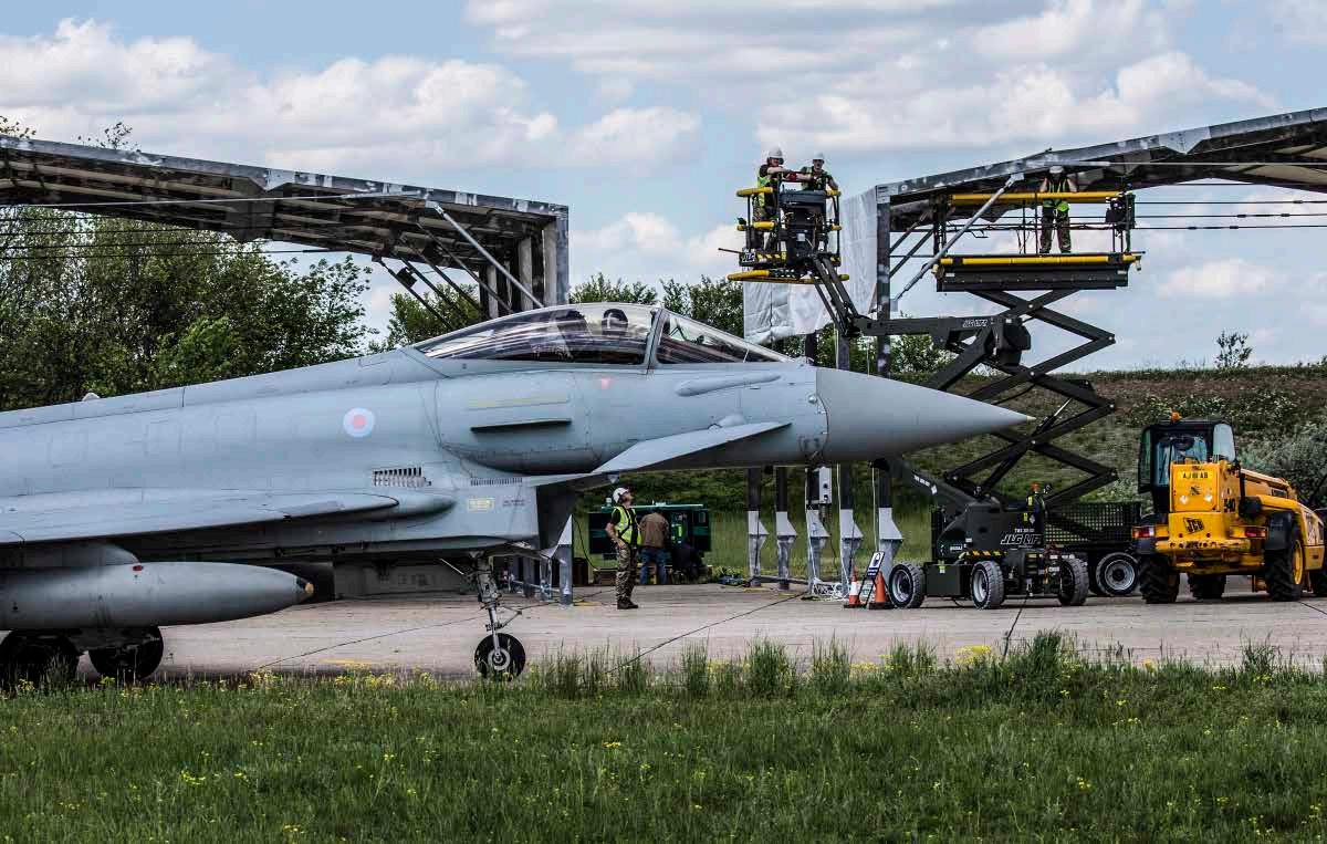 The EFASS aircraft hangar has been adapted into a functional aircraft sunshade to protect vital aircraft and crews from searing temperatures and powerful UV rays.