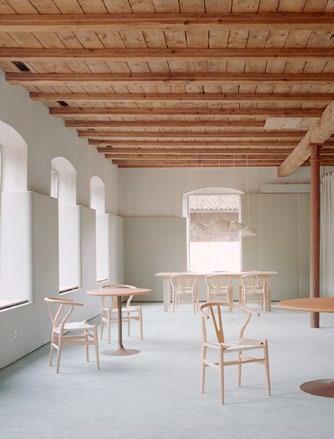 moindres détail s », précise Olivier Nicollas, également co-fondateur de nara. Ainsi, des planches de frêne trouvées à l’intérieur de l’ancienne menuiserie ont été utilisées pour créer une grande table à manger de huit places, dessinée par l’agence et réalisée par un menuisier local. Avec un budget de 350 000 euros, les architectes sont parvenus à rénover les 200 m² d’espace « en préservant un esprit de petit restaurant familial tout en l’adaptant à l’échelle gastronomique, notamment grâce à l’étude de la disposition des tables, qui donnent toutes sur la cuisine », une demande de la cliente qui souhaitait faire de la cuisine la partie centrale de la pièce.