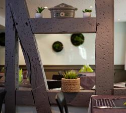 architecturaux conservés. C’est au premier niveau que s’installe K&+, dans un environne ment serein, propice au travail, avec open space, salles de réunion, bibliothèque, matériauthèque… Les différents pôles sont présents : Conception, Économie, Réalisation, Administration, Recherche & Développement et Well-Being. Au rez-de-chaussée, une brasserie qui sera gérée par deux restaurateurs strasbourgeois, les frères Cabrera. Des espaces pensés pour d’agréables pauses déj’, propices à la détente et même au défoulement (une salle de boxe !). À l’arrière, un poumon vert : un grand jardin aménagé (par les membres de l’agence, avec des matériaux de récupération) permet de végétaliser un coin de ville qui manque encore cruellement de verdure, d’arbres, de plantes.