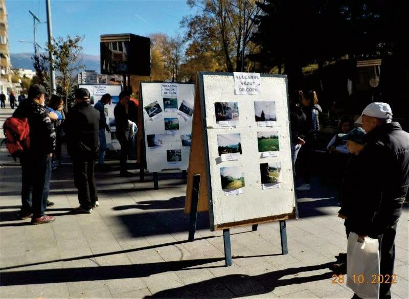 de fotografii care, timp de câteva ore, au fost expuse pe undeva în apropierea statuii minerului de pe Bulevardul Mihai Viteazul. Sunt imagini realizate de către câțiva copii din comunitățile dezavantajate din centrul vechi, colonia de jos, Micro 3 B „Dallas” și Crividia. În fotografii, copiii au surprins Vulcanul așa cum îl văd ei, și cu bune, și cu rele. Ideea a prins bine la trecători, dovadă numărul mare al celor care s-au oprit să vadă fotografiile. La puțin timp de la inaugurare, aici a fost prezent și primarul Cristian Merișanu, însoțit de consilierul local Daniel Lehăceanu.