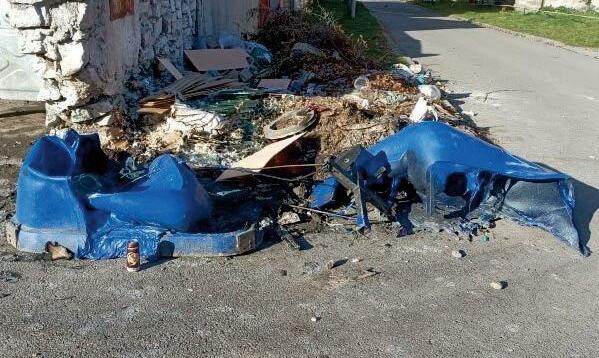 distrus de către animale pe două picioare”. Nu este prima dată când, în acest loc, un container de deșeuri menajere are o asemenea soartă. În plus, astfel de probleme au existat și în alte zone ale orașului.