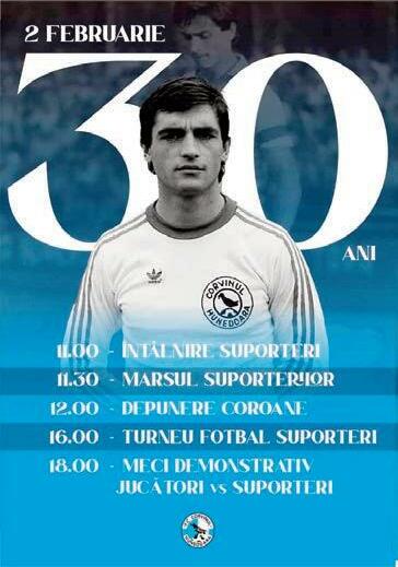 Hunedoara va lua parte la evenimentele din data de 2 februarie, atât la depunerea de coroane de la statuia fostului mare fotbalist, cât și la turneul memorial organizat de fanii echipei. Acolo o echipă mixtă (jucători-staff) va susține un meci demonstrativ, în sala Facultății de Inginerie din Hunedoara.