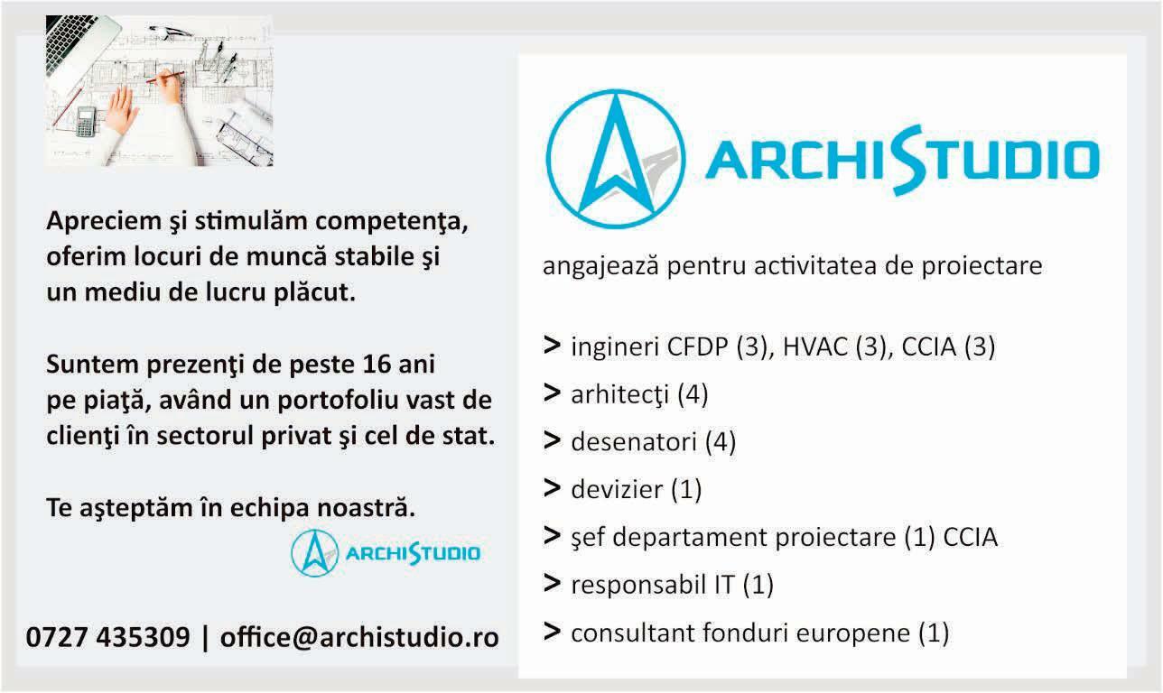 Cu o experiență de aproape 20 de ani pe piața națională de profil și o echipă extinsă de specialiști care activează la sediile sale din județele Hunedoara și Timiș, Archistudio România are deja un portofoliu relevant de proiecte implementate. Sună la 0727435309 (județul Hunedoara) sau 0727838523 (județul Timiș) pentru a afla cum putem transforma proiectul tău în realitate.