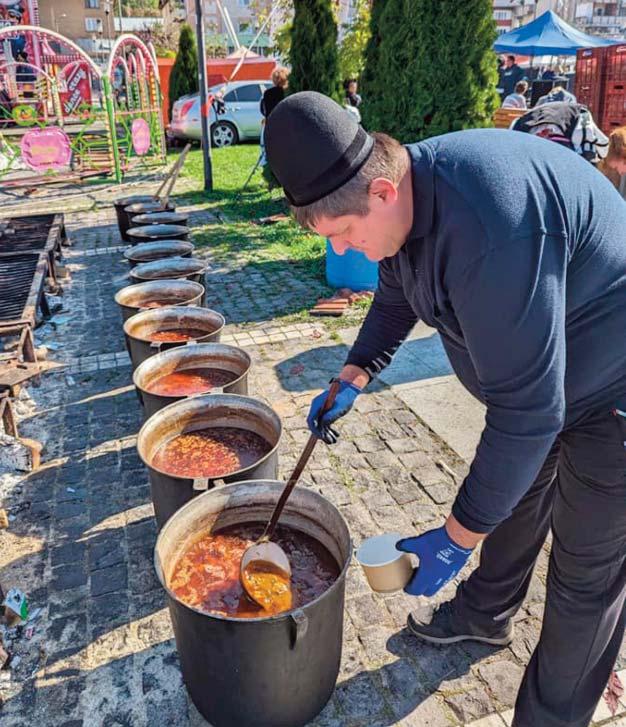 atras sute de oameni din case încă de dimineaţă. La prânz erau în Piaţa Victoriei câteva mii de oameni. Primarul Petroșaniului, îmbrăcat în straie de momârlan, n-a scăpat prilejul de a face o baie de mulţime și de a sta de vorbă cu cei care au pregătit și au împărţit mâncarea, peste 800 de porţii fiind oferite în 40 de minute, un mic record de până acum de la astfel de evenimente.