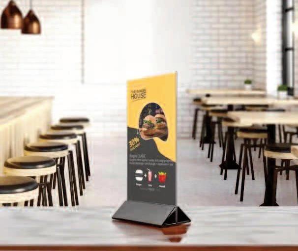 Terasele sunt spații deschise, așa că ai nevoie de modele de meniu durabile, care să reziste la vânt, soare sau umezeală Suportul de meniu tip A, cu personalizare grafică, este alegerea ideală Vizibil din ambele părți și ușor de integrat în decor, este și o bună oportunitate de branding.