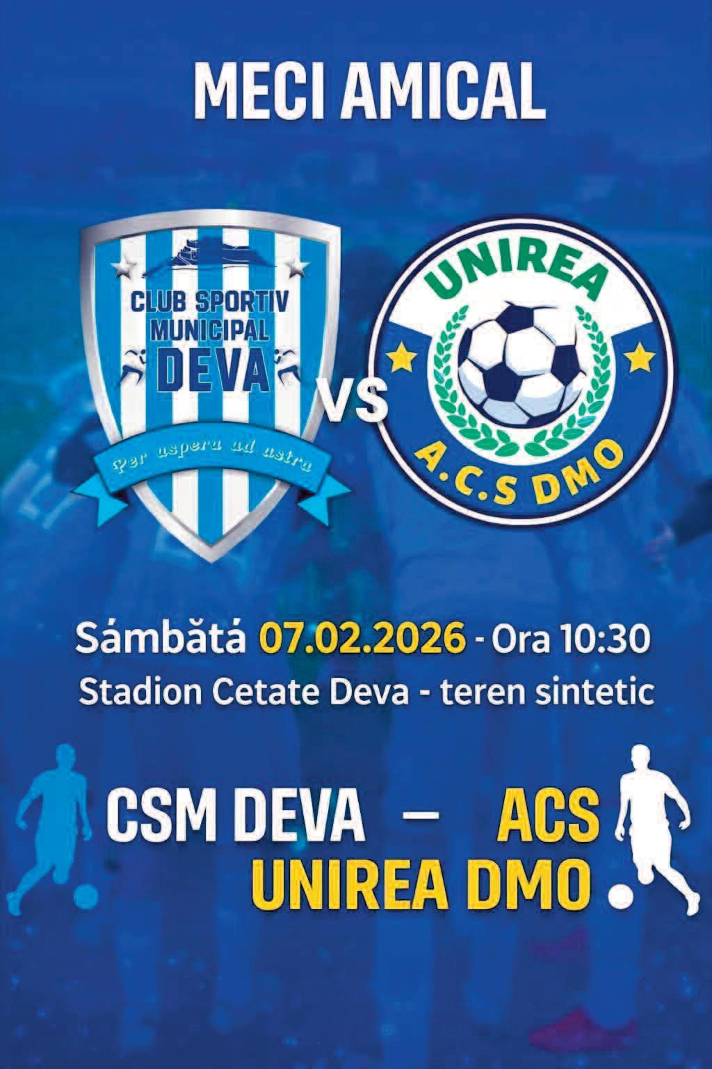 Când?: Sâmbătă, 7 Februarie 2026; ora: 10:30; Stadion Cetate Deva (Teren Sintetic)