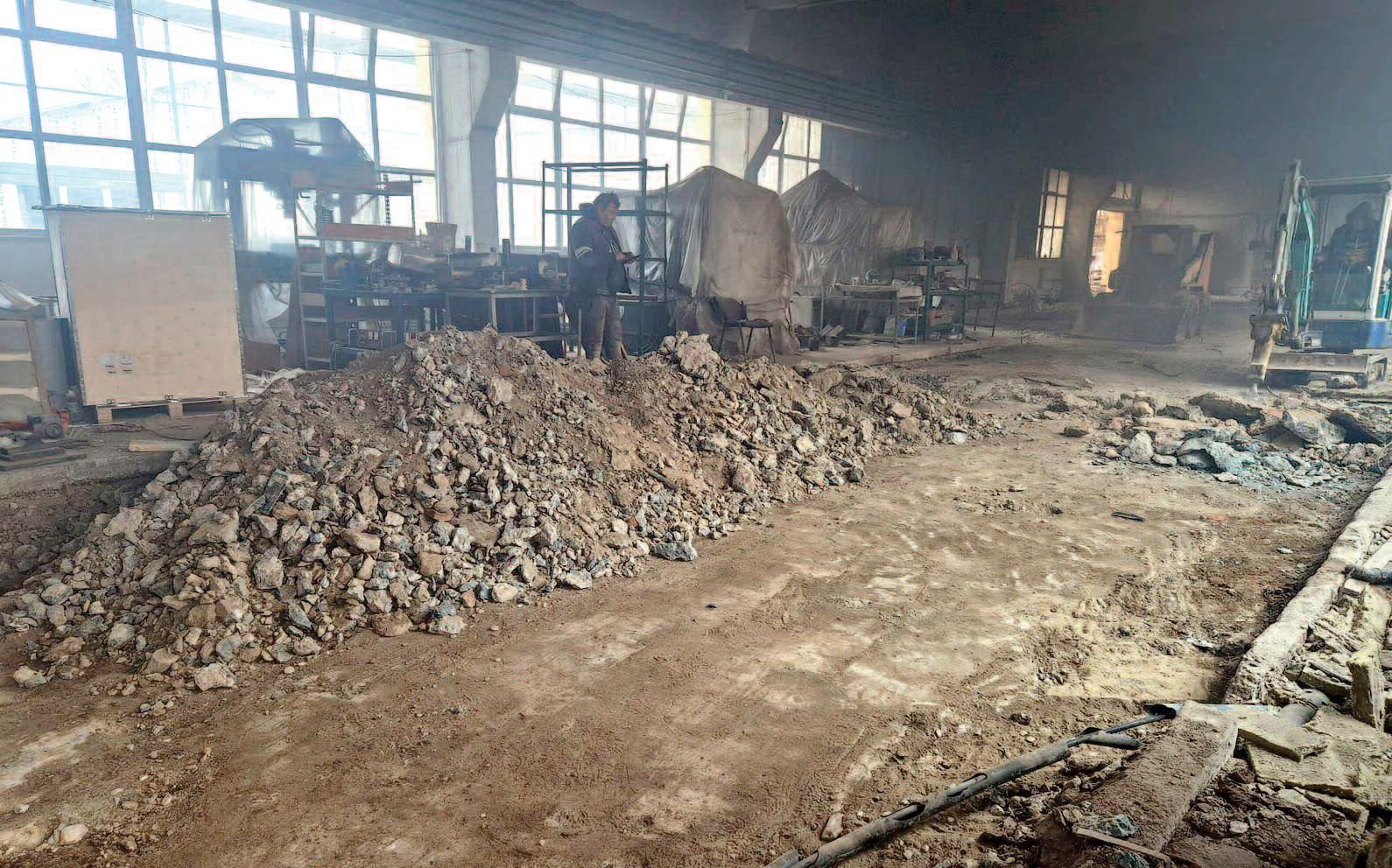 Escavatoare, picamere și muncitori lucrează intens în interiorul atelierului-școală al Universității din Petroșani Cum vremea nu este favorabilă lucrărilor în exterior, șantierul s-a mutat în clădire, unde se execută unele dintre cele mai importante etape ale reabilitării. Spațiul de învățământ, folosit de generații întregi de studenți, avea o infrastructură care data din anii ’60. Pardoseala era realizată din butuci de lemn, adaptați tehnologiei de atunci, dar incompatibili cu echipamentele moderne achiziționate recent de universitate „Acest spațiu de învățământ avea niște utilaje bune, performante la acele vremuri, iar soclul pe care erau puse era cumva din lemn Toată pardoseala era într-un sistem de butuci de lemn, bine tratați. Acum, pentru că pe exterior s-au făcut o serie de lucrări și vremea ne permite doar pe