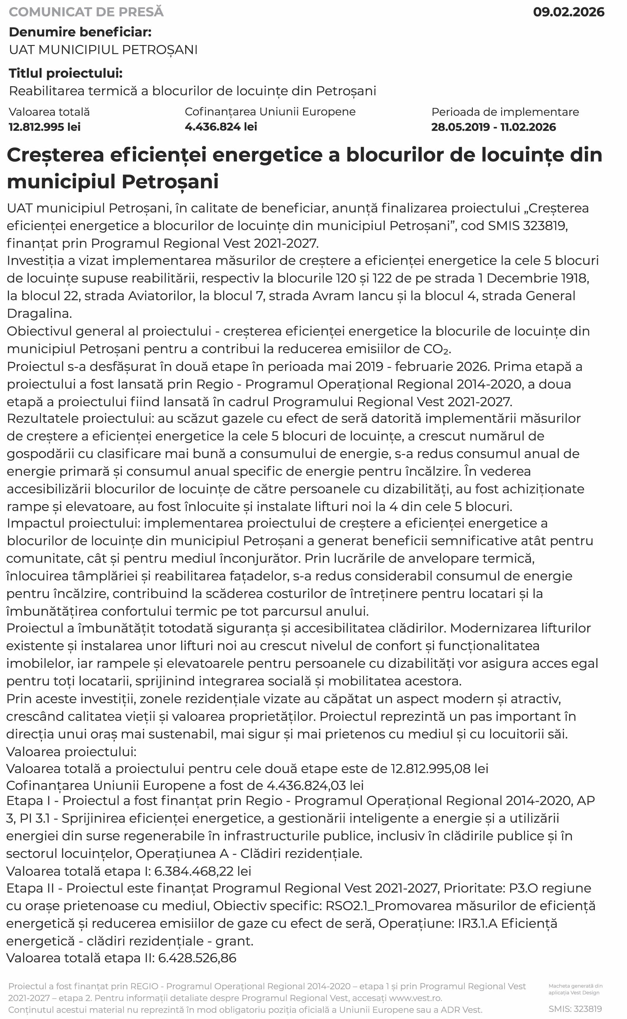 Executantul va folosi echipamente moderne și va respecta toate standardele și autorizațiile feroviare, eliberate de AFER, precum și certificatele de calitate necesare pentru astfel de lucrări Investiția este finanțată din fonduri europene prin Programul Transport 2021–2027, completată din bugetul de stat și resursele proprii ale CFR.