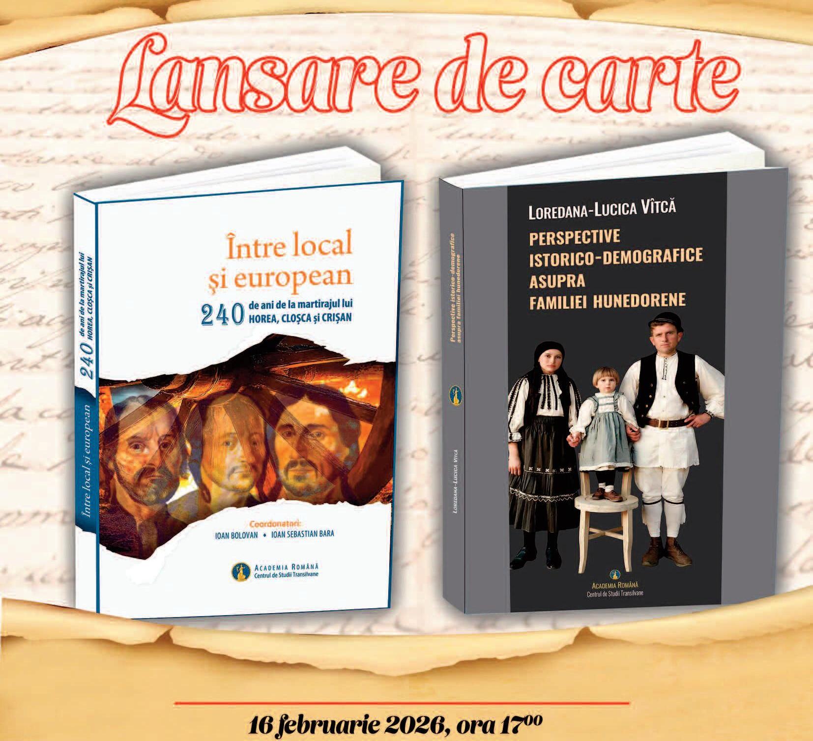 Amplul volum dedicat răscoalei conduse de Horea, Cloșca și Crișan va avea parte, cu siguranță, de aprecierea istoricilor și a tuturor celor care vor să cunoască acest eveniment dramatic petrecut cu două secole și jumătate în urmă. Cu același prilej, se va lansa un volum interesant cu caracter etno-folcloric, „Perspective istorico-demografice asupra familiei hunedorene Continuitate și schimbare (1850-1938)” a cărui autoare este prof dr LoredanaLucica Vîtcă, apărut tot sub egida Academiei Române și a Centrului de Studii Transilvane. Volumul este rodul unei ample cercetări sub multiple unghiuri –demografic, sociologic, antropologic, istoric – a evoluției familiei hunedorene într-un arc de timp ce cuprinde perioada ultimei jumătăți a secolului XIX și