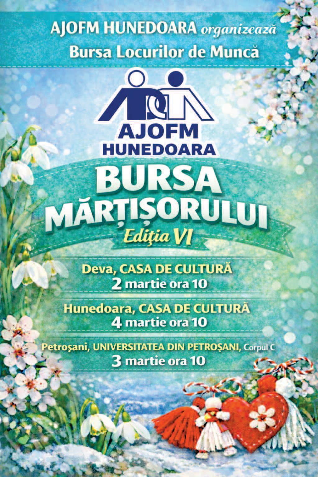 Mărțișorul vine anul acesta cu oferte de muncă! AJOFM Hunedoara lansează cea de-a șasea ediție a evenimentului devenit deja tradiție: „Bursa Mărțișorului”.
