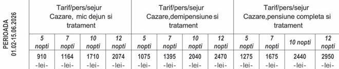 La 12 nopți cu pensiune completă, tariful este 2950 lei Costul pe noapte ajunge în jur de 246 lei pentru cazare, plus toate mesele incluse