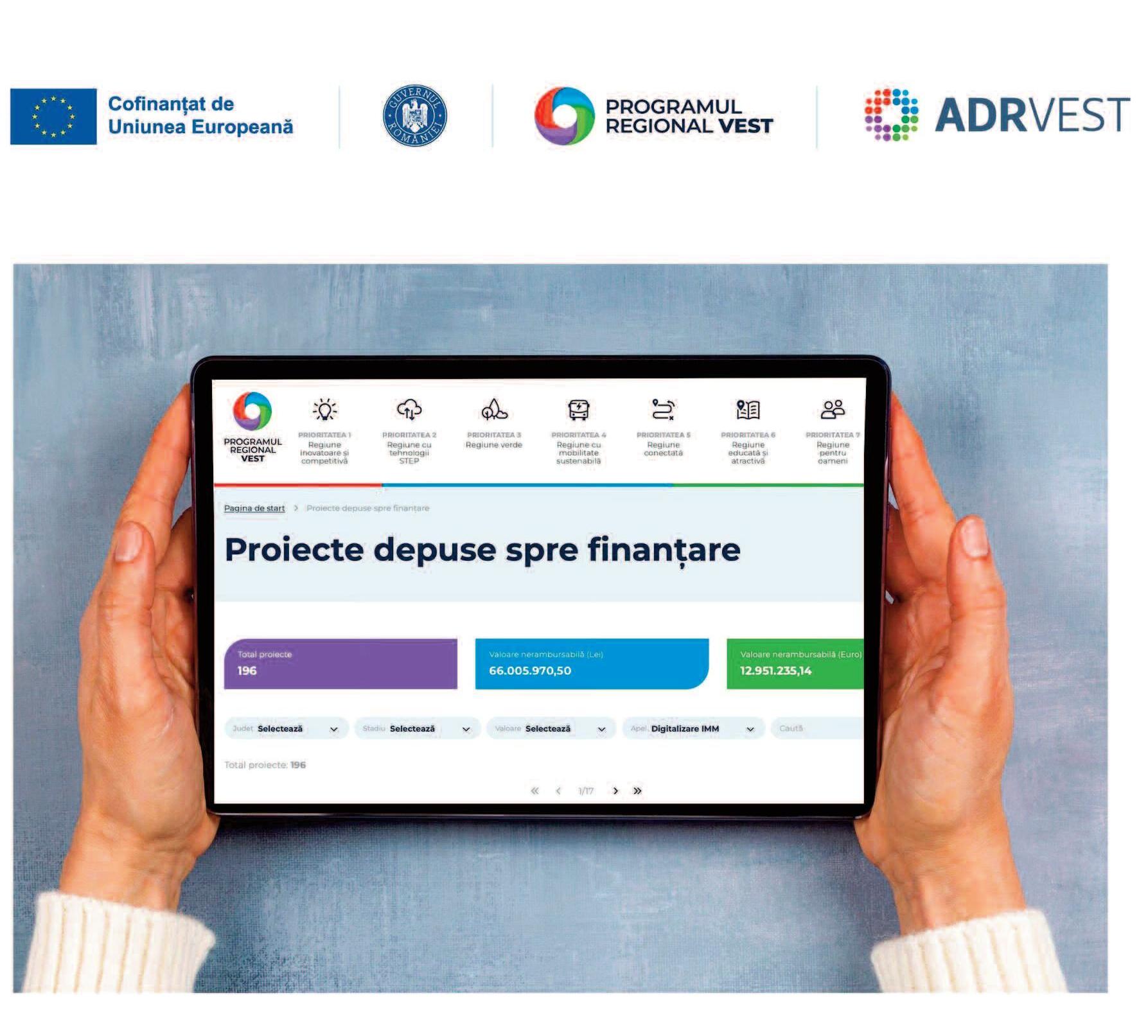 Reprezentanții Programului Regional Vest subliniază că numărul mare de cereri demonstrează o maturizare a mediului de afaceri regional. Companiile au înțeles că digitalizarea nu mai este un lux, ci singura cale pentru a rămâne relevante în fața concurenței internaționale și pentru a accesa portofolii noi de clienți După închiderea apelului, proiectele intră acum întro analiză riguroasă Experții vor verifica viabilitatea fiecărui plan de afaceri. Lista finală cu firmele care vor primi finanțarea va fi comunicată în perioada următoare.