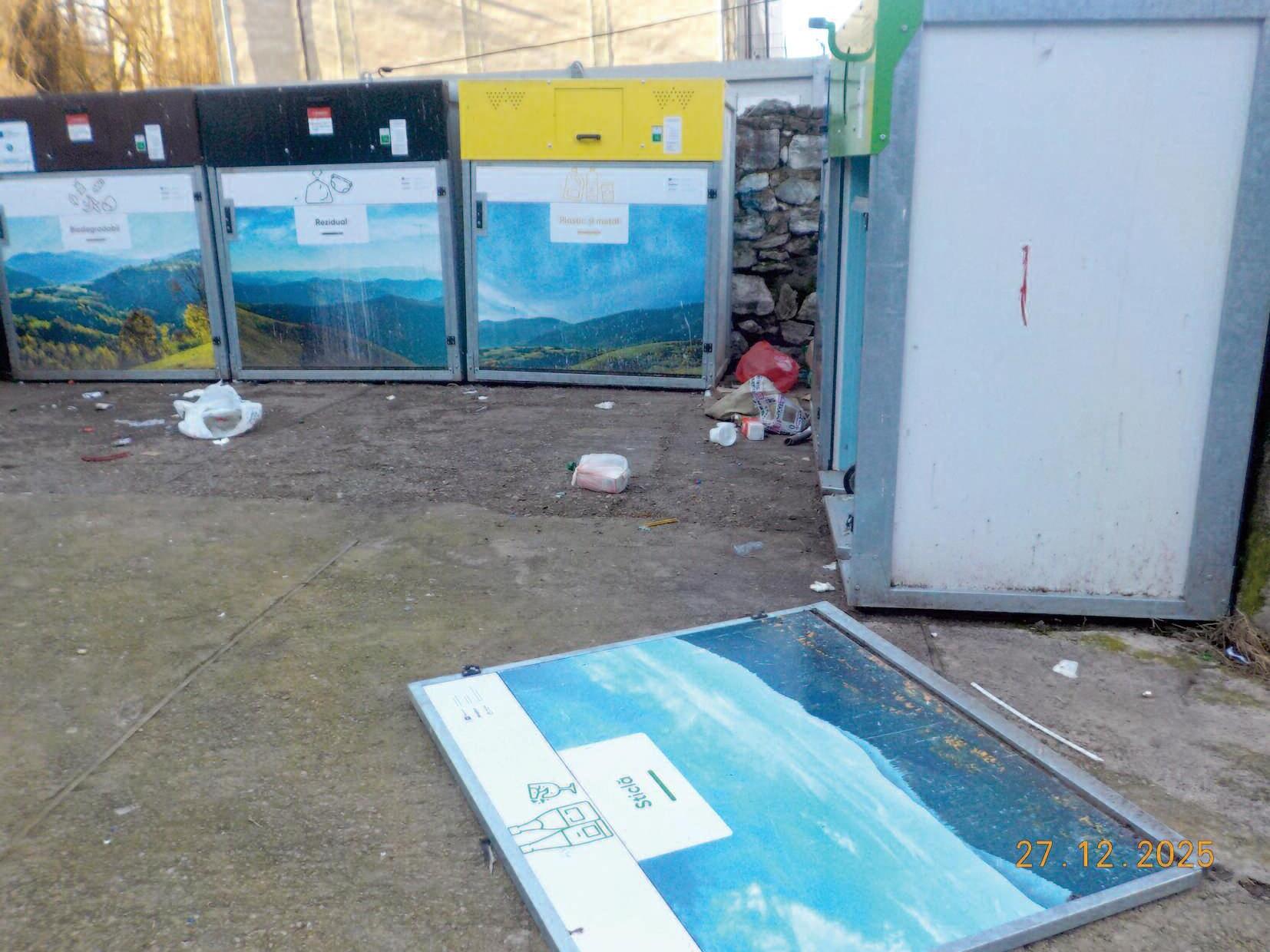colectare a deșeurilor menajere Teoretic, compartimentele unui astfel de insule ecologice se deschid numai cu cartela pe care fiecare cetățean a primit-o S-a întâmplat, însă, ca ușițele câtorva să se deschidă și să ajungă la pământ fără să mai fie necesară acționarea echipamentului lor electronic Cazul de față e de la Vulcan