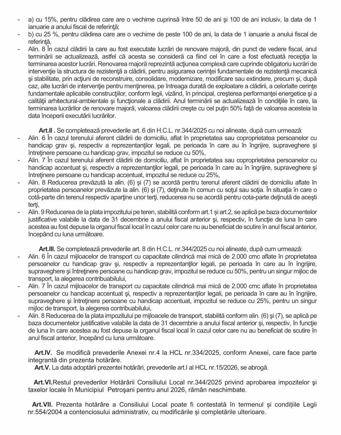 „Cei care au plătit deja taxele pot să-și recupereze banii sau pot să-i păstreze pentru taxele de anul viitor sau alte tipuri de taxe care le vor achita la primărie Dar cine dorește poate să facă cerere și diferențele vor fi returnate „ mai completat primarul Prin această decizie, Petroșaniul devine unul dintre primele orașe care implementează cotele minime de taxare permise de noua ordonanță, oferind o gură de aer proaspăt în special pensionarilor care locuiesc în clădiri istorice și persoanelor cu nevoi speciale Pe lângă reducerile imediate, a fost aprobată deja și scăderea coeficientului de impozitare de la 0,12 la 0,08 începând cu anul viitor