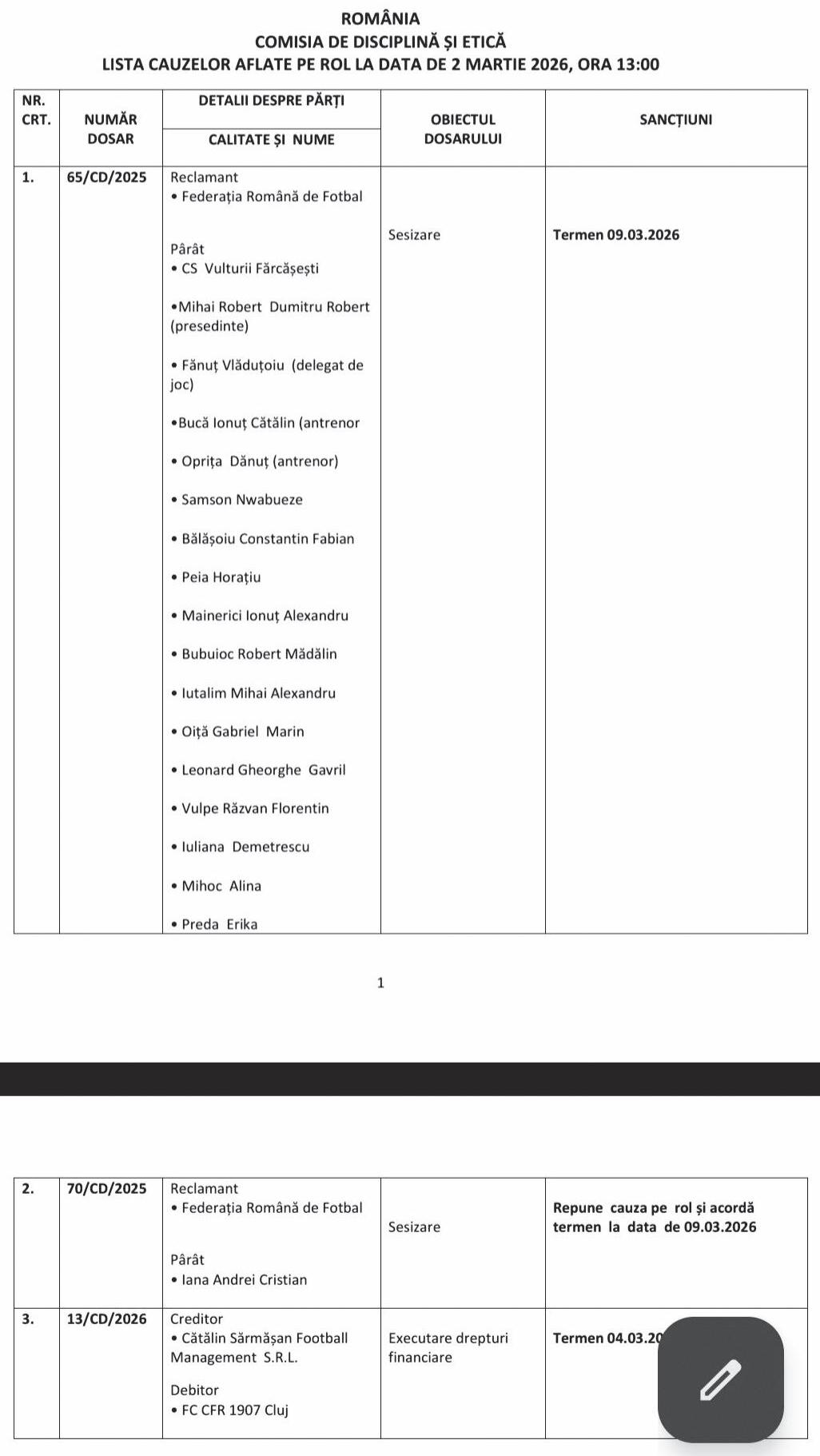 Verdictul FRF, împins spre 9 martie. Comisia de Disciplină și Etică a Federației Române de Fotbal pare să fie în fața unui „meci” mult mai complicat decât anticipa inițial. Pe 2 martie 2026, forul federal a decis o nouă amânare a pronunțării în dosarul nr. 65/CD/2025, cunoscut publicului sub numele de „Cota 100”. Deși microbiștii și integritatea sportului românesc așteptau un deznodământ, membrii comisiei au stabilit un nou termen pentru data de 9 martie.