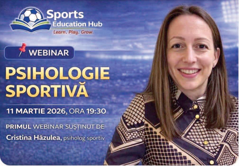 Webinarul va fi susținut de Cristina Hăzulea, psiholog sportiv cu experiență, care va oferi instrumente practice pentru părinți și antrenori.
