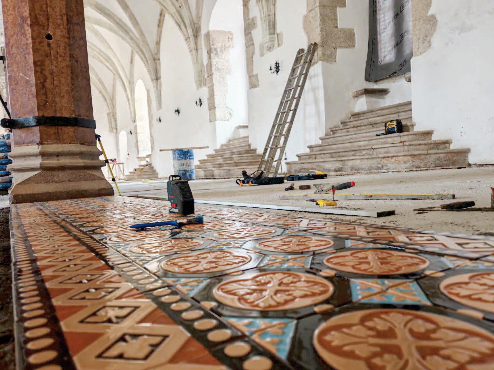 Restaurare spectaculoasă la Castelul Corvinilor! Pardoseala celebrei „Săli a Cavalerilor” prinde viață cu ajutorul a 8.000 de plăci ceramice pictate manual, realizate de aceeași fabrică din Ungaria care a decorat monumentul și în urmă cu 130 de ani.