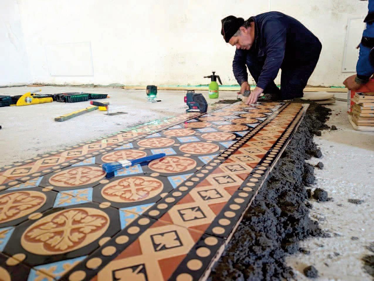 Aproape opt mii de plăci ceramice - mai exact 7 969sunt folosite în această ultimă etapă de restaurare a pardoselii din Sala Cavalerilor Procesul este unul laborios, deoarece fiecare piesă este realizată manual, respectând desenele originale din anul 1890 ale arhitecților Antal Khuen și István Möller. Autenticitatea este cuvântul de ordine: plăcile sunt produse de celebra fabrică Zsolnay din Pécs, Ungaria,