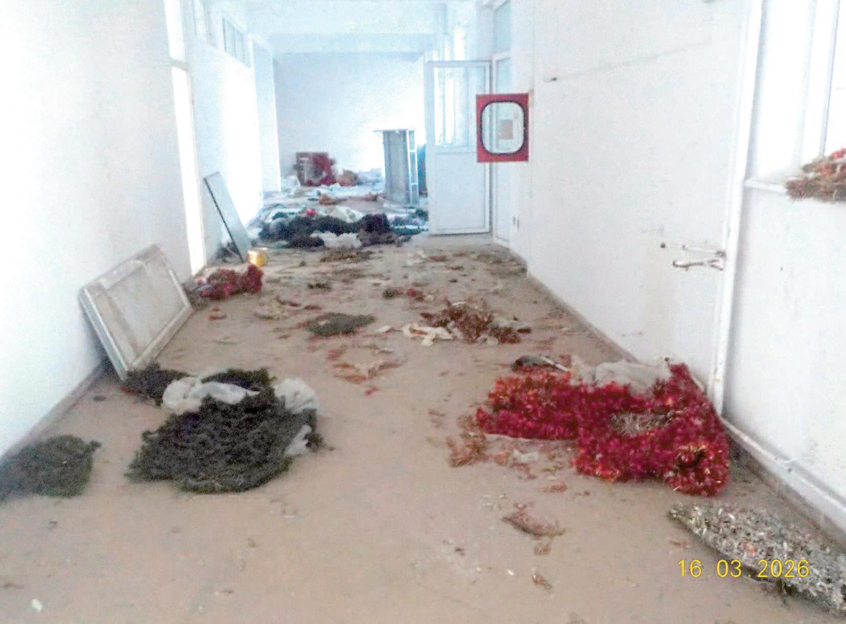 exact cu cât timp în urmă, paza a fost ridicată, iar clădirea a ajuns la cheremul hoților. E jale acum în interior și, negreșit, va fi și mai și. Uși rupte și lăsate deschise, geamuri sparte, grupuri sociale vandalizate, gunoaie și excremente umane pe hol și în săli Imaginile sunt numai de la parter, dar ce-o fi la etajele de deasupra