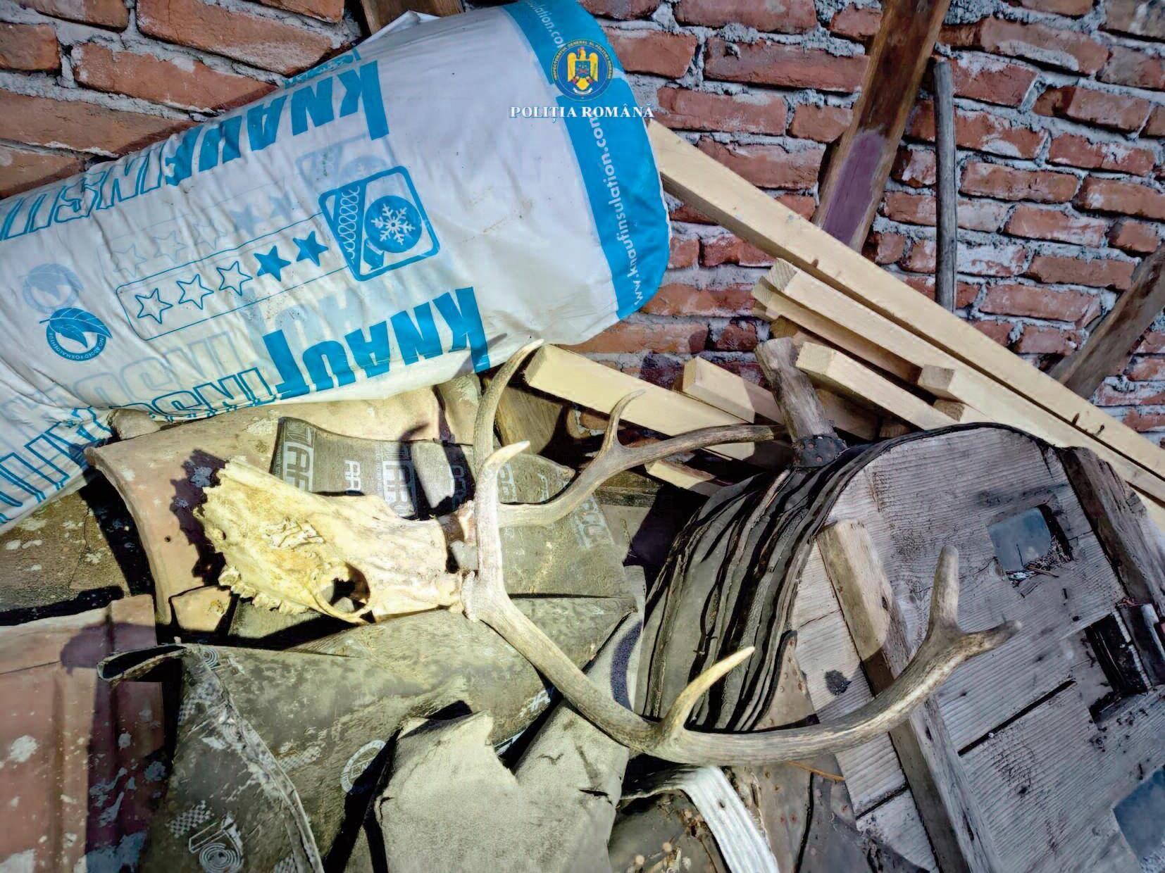 neletală cu aer comprimat, o țeavă de armă letală de calibru 20, cu seria ștearsă, peste 190 de cartușe letale de diferite calibre, 12 cartușe fără proiectil și 432 capse. De asemenea, au fost ridicate cantități semnificative de componente și materiale pentru confecționarea muniției, două recipiente cu praf de pușcă, o cameră cu termoviziune și două lanterne, un articol pirotehnic din categoria P1 și mai multe trofee de vânătoare, inclusiv un trofeu de cerb, șase de căprior și patru de mistreț. De asemenea, anchetatorii au identificat dispozitive și matrițe folosite pentru producerea artizanală a muniției, precum și