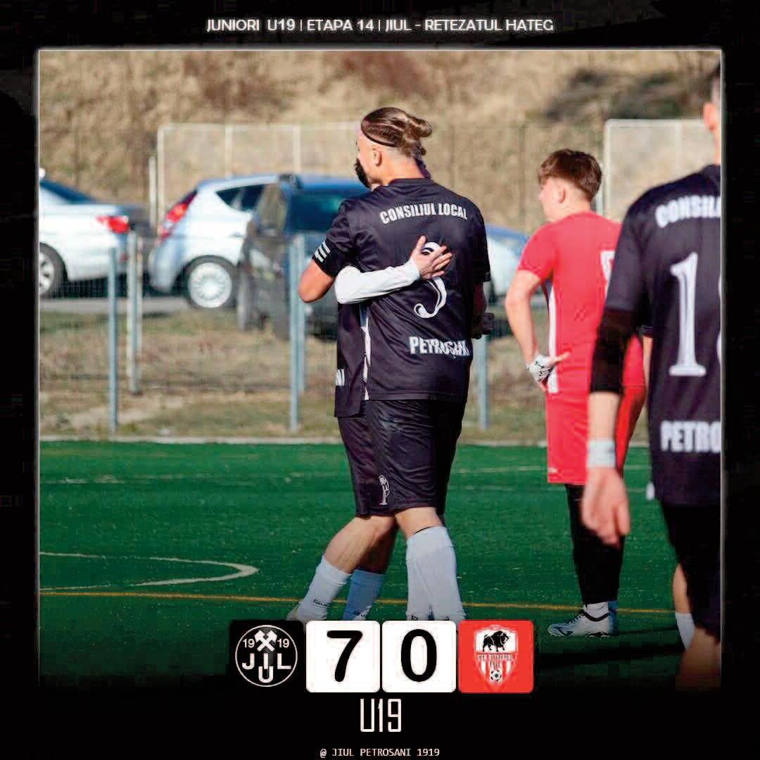 CSM Jiul Petroșani U19 domină etapa a 14-a! CSM Jiul Petroșani U19 a oferit o adevărată demonstrație de forță în cea mai recentă etapă a Campionatului U19, reușind să se impună cu un neverosimil 7-0 în fața echipei Retezatul Hațeg Într-un duel controlat autoritar de la un capăt la altul, tinerii jucători ai Jiului au arătat o maturitate tactică de invidiat și o poftă de joc care a lăsat puține șanse adversarului