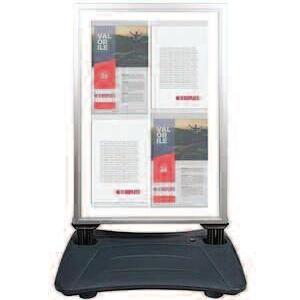 Acest panou are un sistem flexibil care permite balansarea în vânt, reducând riscul de răsturnare. Este prevăzut cu ramă click și afiș printat. Este potrivit pentru exterior, în zone circulate