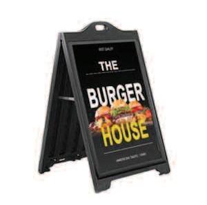 Acest tip de panou are suprafață neagră, pe care scrii cu cretă Are un aspect casual și prietenos, ideal pentru mesaje creative. Este perfect pentru cafenele, chioșcuri sau fast-food-uri care promovează oferte zilnice sau mesaje amuzante. Atrage atenția prin originalitate și flexibilitate, fiind ușor de actualizat zilnic.