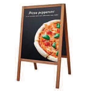 Aceste panouri stradale din lemn au un aspect retro, elegant și natural Se scrie pe ele cu cretă, iar unele modele au roți și rezistență la vânt Sunt preferate de cafenele, bistrouri și magazine artizanale care vor un aspect autentic
