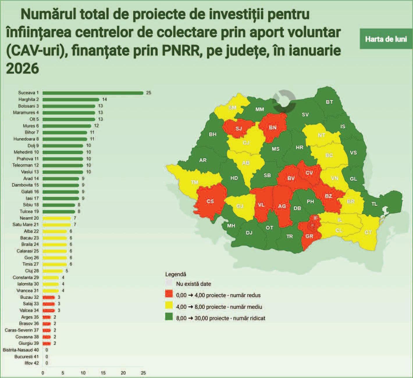 Ianuarie 2026 aduce o radiografie clară a modului în care autoritățile locale au reușit să atragă fonduri nerambursabile pentru curățenia comunităților Potrivit datelor centralizate de platforma