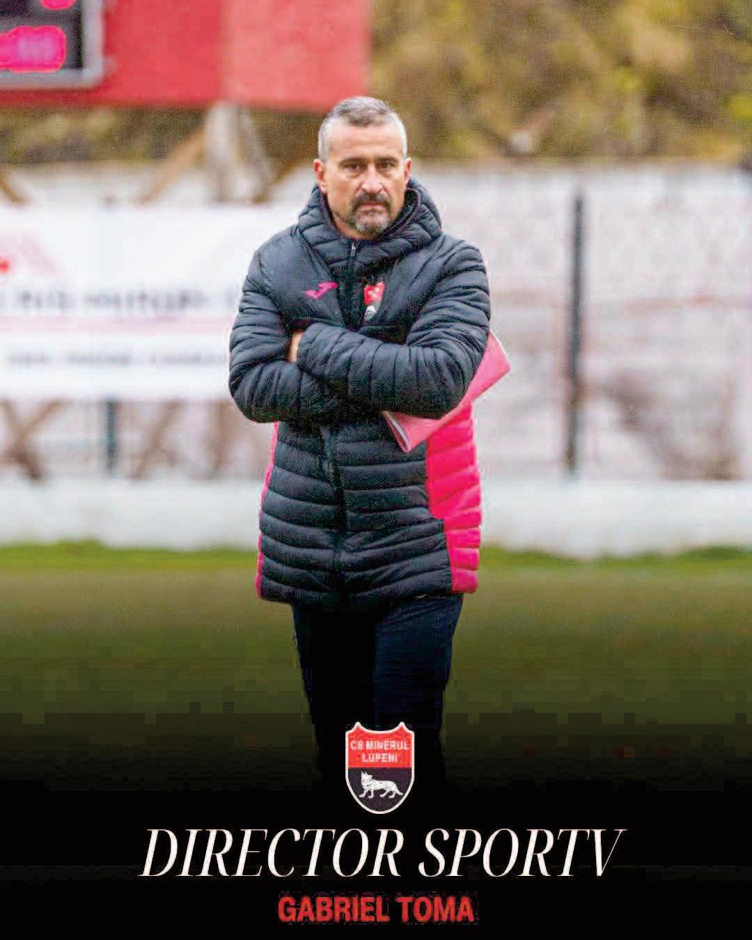 Antrenorul Toma - avansat director spor tiv Minerul Lupeni demonstrează că știe să își prețuiască oamenii. Gabriel Toma face pasul de pe banca tehnică direct în centrul de comandă al clubului, ocupând funcția vitală de director sportiv.